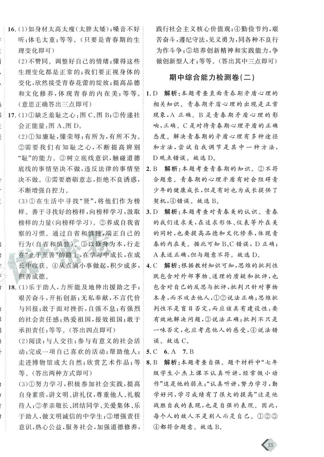 注:目前有些书本章节名称可能整理的还不是很完善,但都是按照顺序排列的,请同学们按照顺序仔细查找。练习册 2024年优加密卷七年级道德与法治下册人教版 答案主要是用来给同学们做完题方便对答案用的,请勿直接抄袭。