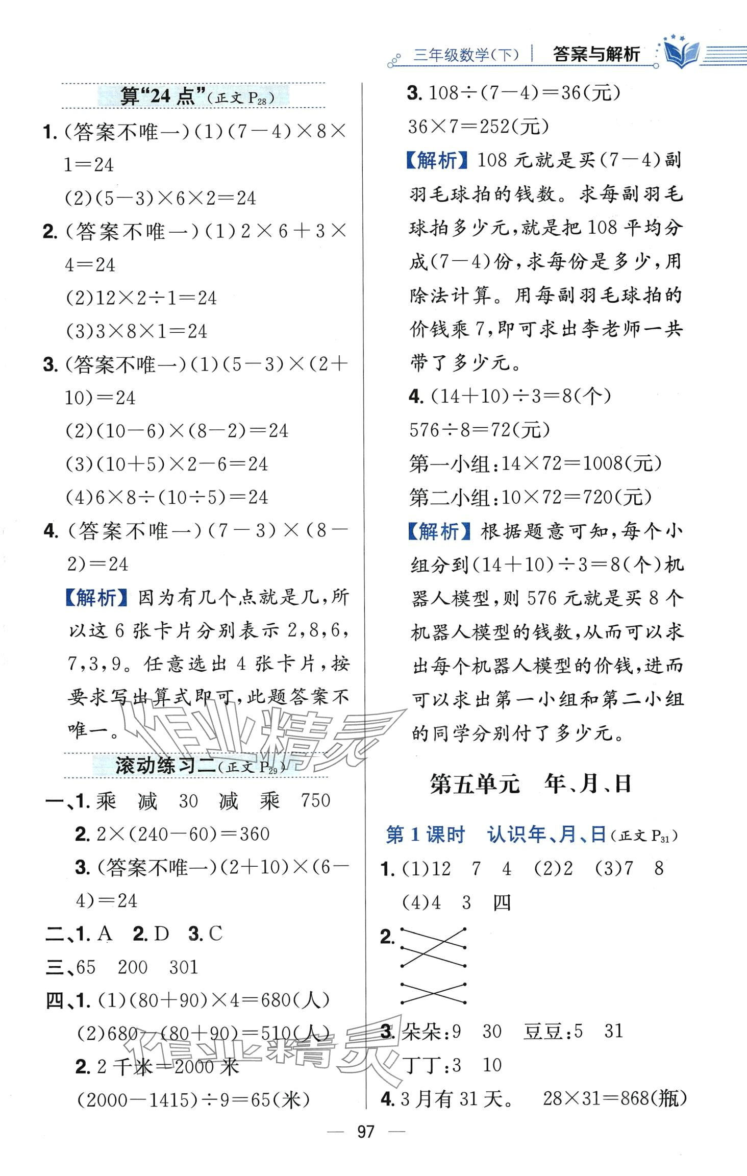 注:目前有些书本章节名称可能整理的还不是很完善,但都是按照顺序排列的,请同学们按照顺序仔细查找。练习册 2024年教材全练三年级数学下册苏教版 答案主要是用来给同学们做完题方便对答案用的,请勿直接抄袭。