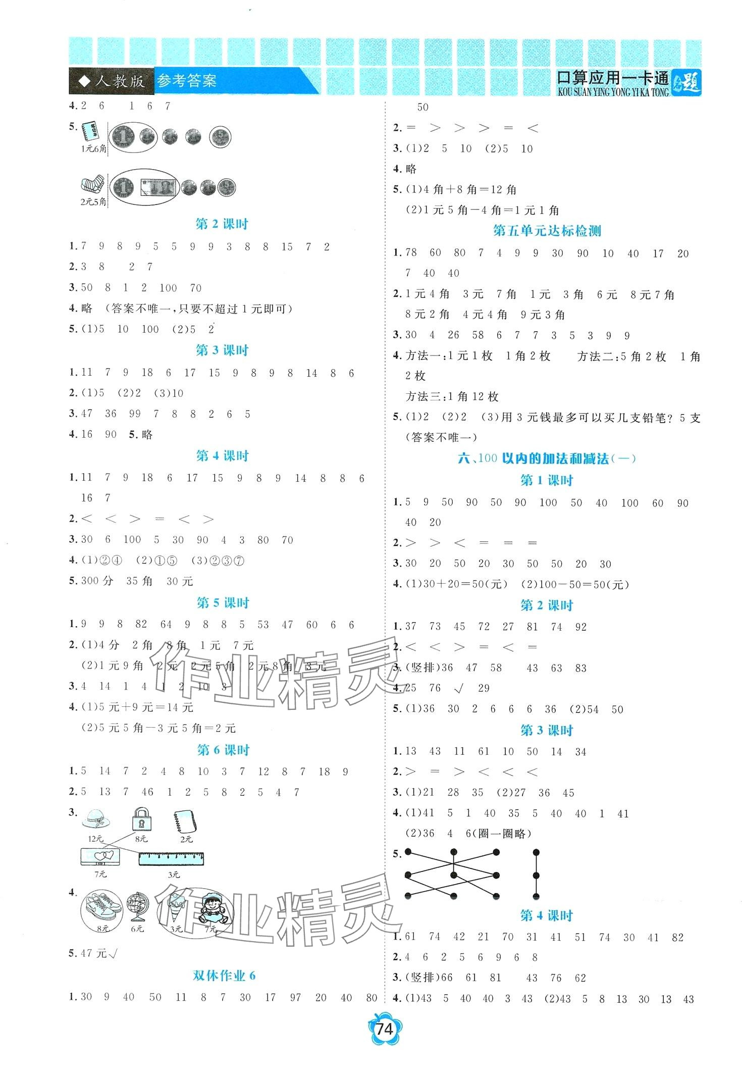 注:目前有些书本章节名称可能整理的还不是很完善,但都是按照顺序排列的,请同学们按照顺序仔细查找。练习册 2024年状元课堂口算与应用一年级数学下册人教版 答案主要是用来给同学们做完题方便对答案用的,请勿直接抄袭。