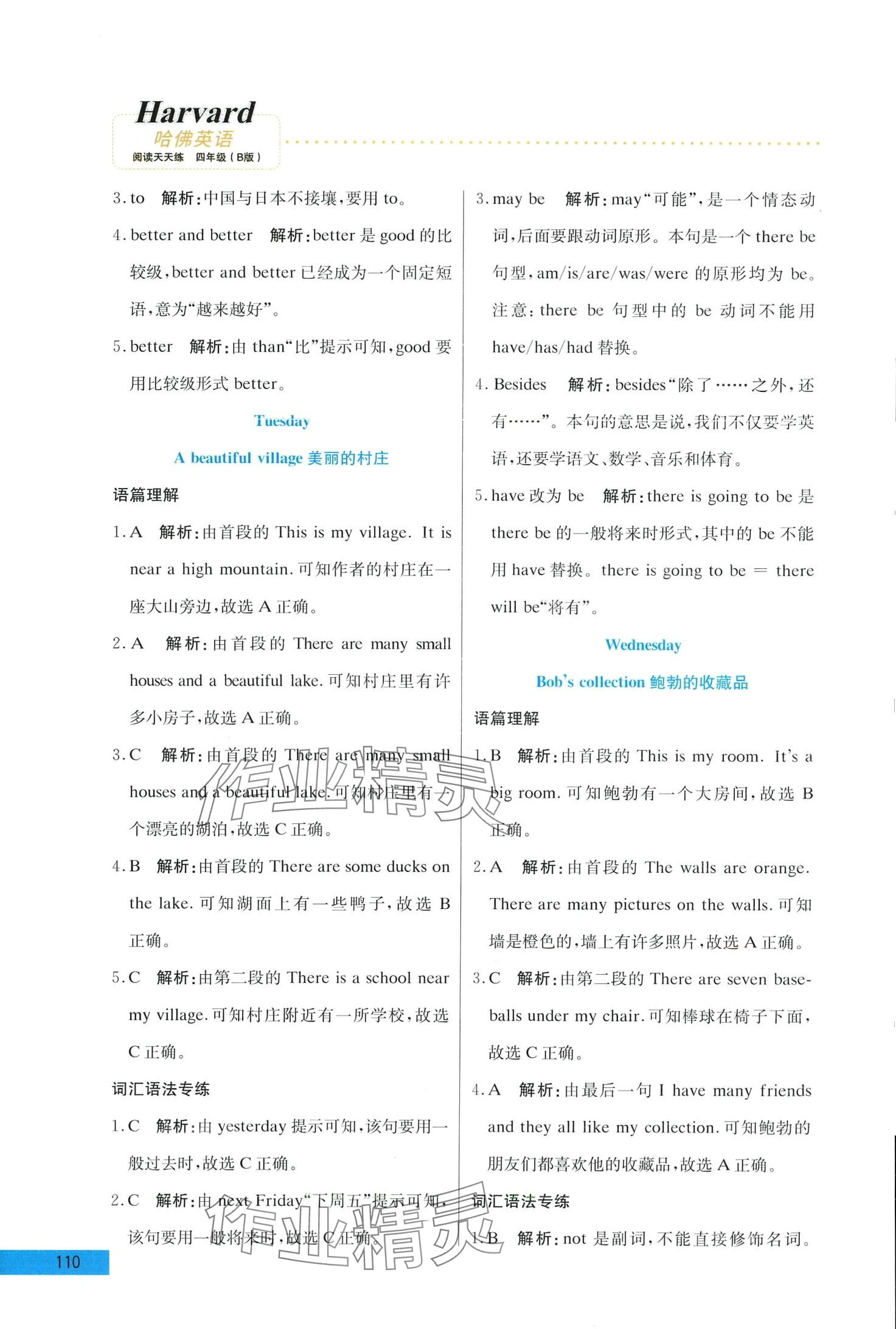 注:目前有些书本章节名称可能整理的还不是很完善,但都是按照顺序排列的,请同学们按照顺序仔细查找。练习册 2024年哈佛英语阅读天天练四年级B版 答案主要是用来给同学们做完题方便对答案用的,请勿直接抄袭。