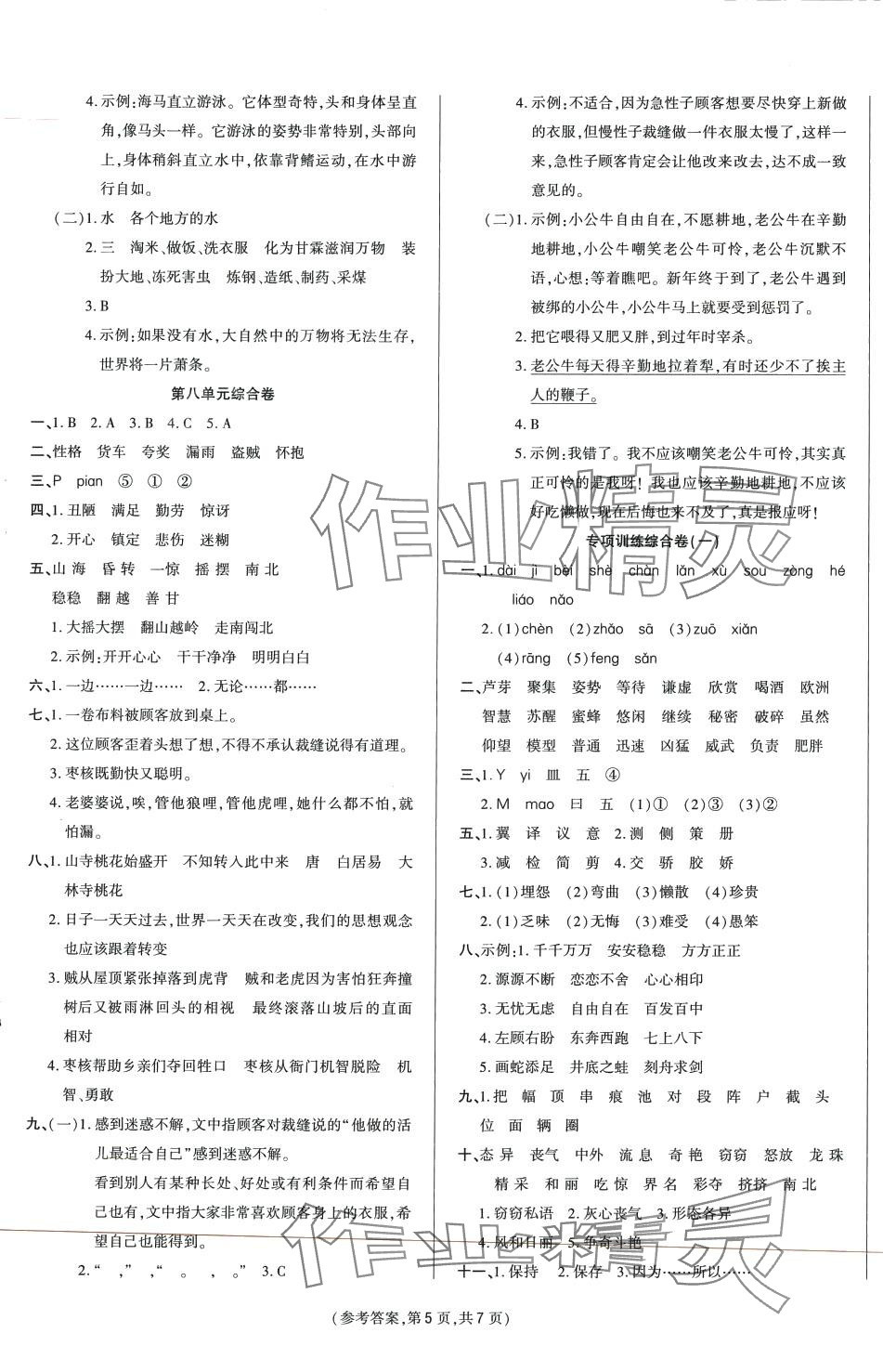 注:目前有些书本章节名称可能整理的还不是很完善,但都是按照顺序排列的,请同学们按照顺序仔细查找。练习册 2024年金牌大考卷三年级语文下册人教版 答案主要是用来给同学们做完题方便对答案用的,请勿直接抄袭。