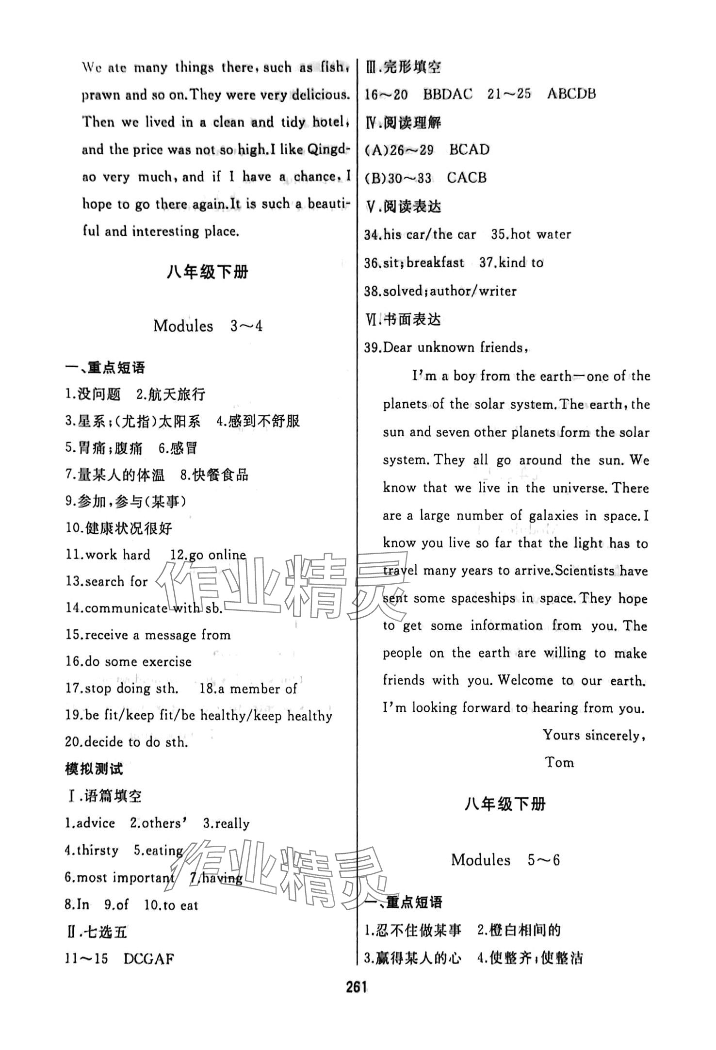 注:目前有些书本章节名称可能整理的还不是很完善,但都是按照顺序排列的,请同学们按照顺序仔细查找。练习册 2024年龙江中考九年级英语全一册外研版大庆专版 答案主要是用来给同学们做完题方便对答案用的,请勿直接抄袭。