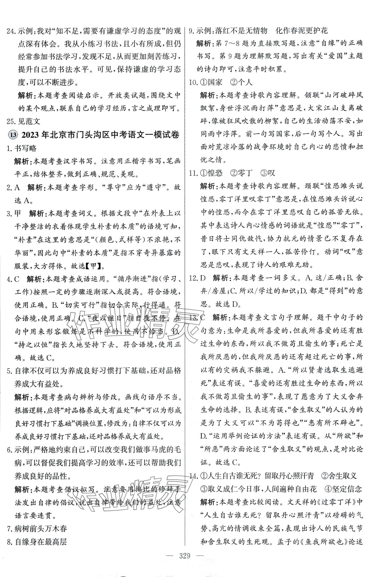 注:目前有些书本章节名称可能整理的还不是很完善,但都是按照顺序排列的,请同学们按照顺序仔细查找。练习册 2024年北京市各区模拟及真题精选语文中考 答案主要是用来给同学们做完题方便对答案用的,请勿直接抄袭。