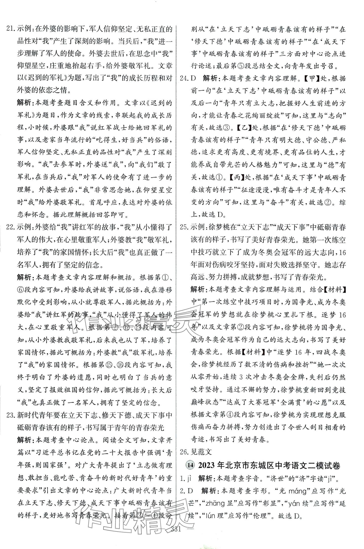 注:目前有些书本章节名称可能整理的还不是很完善,但都是按照顺序排列的,请同学们按照顺序仔细查找。练习册 2024年北京市各区模拟及真题精选语文中考 答案主要是用来给同学们做完题方便对答案用的,请勿直接抄袭。