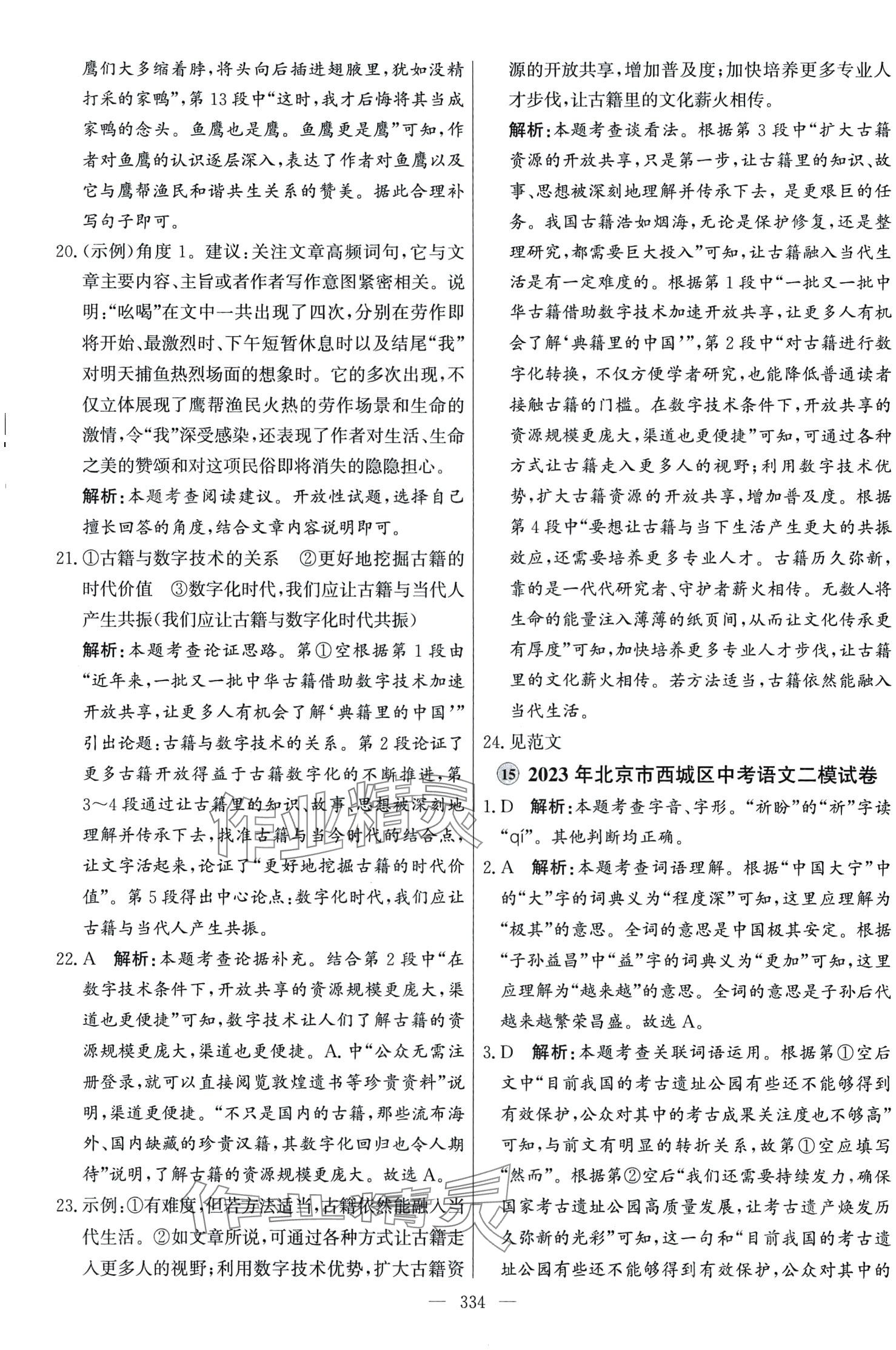 注:目前有些书本章节名称可能整理的还不是很完善,但都是按照顺序排列的,请同学们按照顺序仔细查找。练习册 2024年北京市各区模拟及真题精选语文中考 答案主要是用来给同学们做完题方便对答案用的,请勿直接抄袭。
