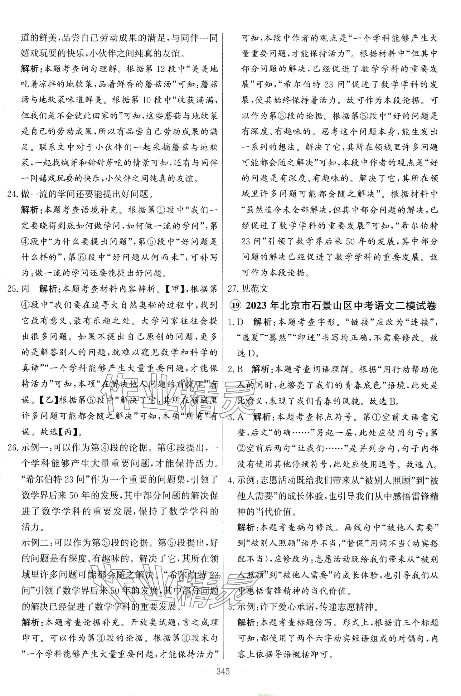 注:目前有些书本章节名称可能整理的还不是很完善,但都是按照顺序排列的,请同学们按照顺序仔细查找。练习册 2024年北京市各区模拟及真题精选语文中考 答案主要是用来给同学们做完题方便对答案用的,请勿直接抄袭。