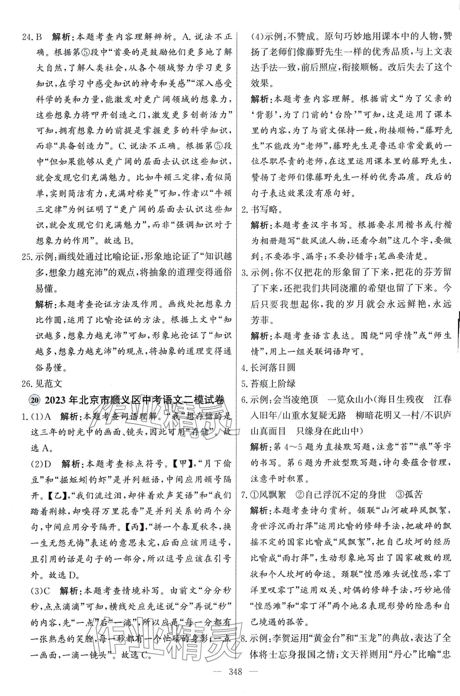 注:目前有些书本章节名称可能整理的还不是很完善,但都是按照顺序排列的,请同学们按照顺序仔细查找。练习册 2024年北京市各区模拟及真题精选语文中考 答案主要是用来给同学们做完题方便对答案用的,请勿直接抄袭。
