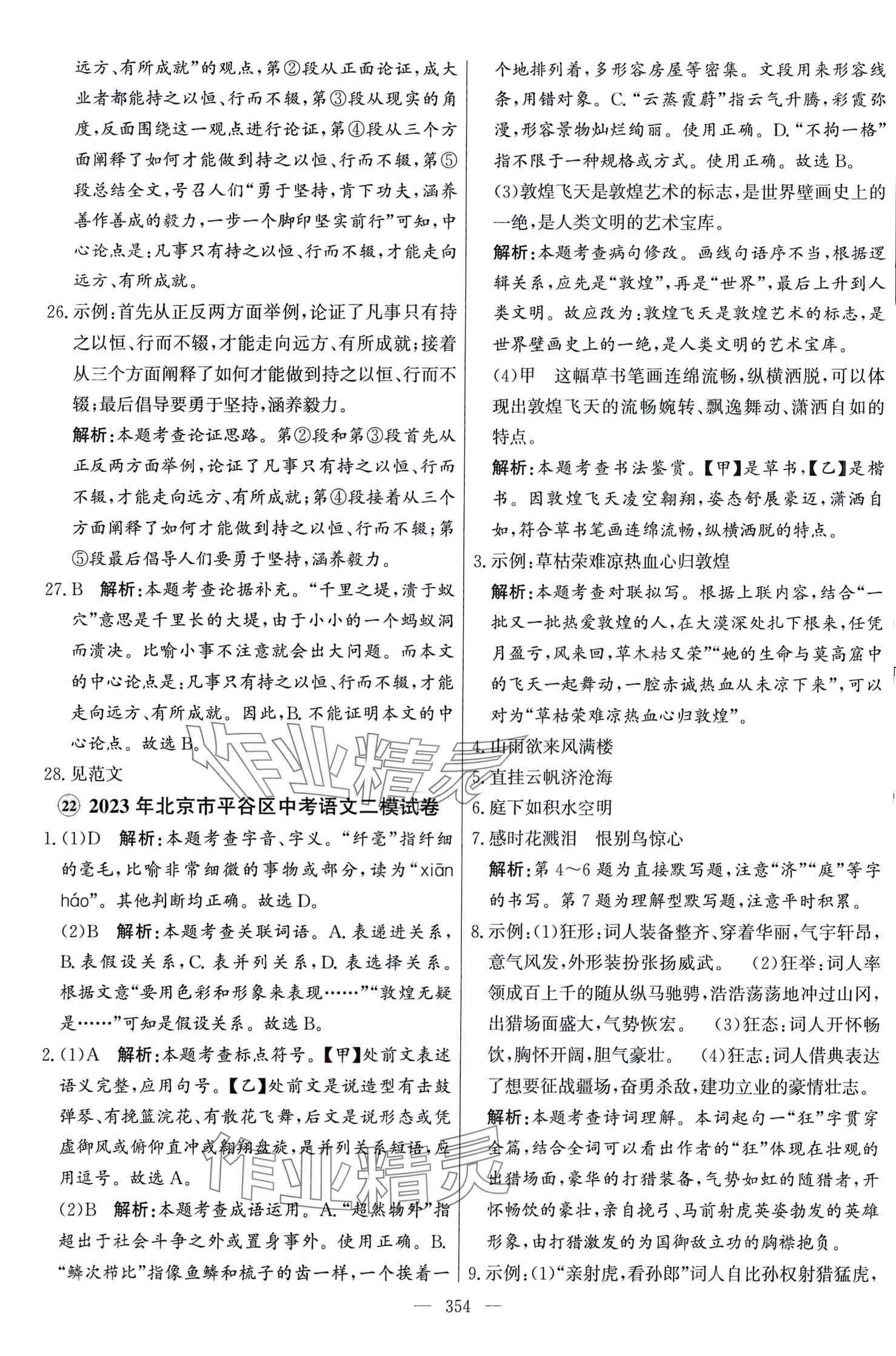 注:目前有些书本章节名称可能整理的还不是很完善,但都是按照顺序排列的,请同学们按照顺序仔细查找。练习册 2024年北京市各区模拟及真题精选语文中考 答案主要是用来给同学们做完题方便对答案用的,请勿直接抄袭。
