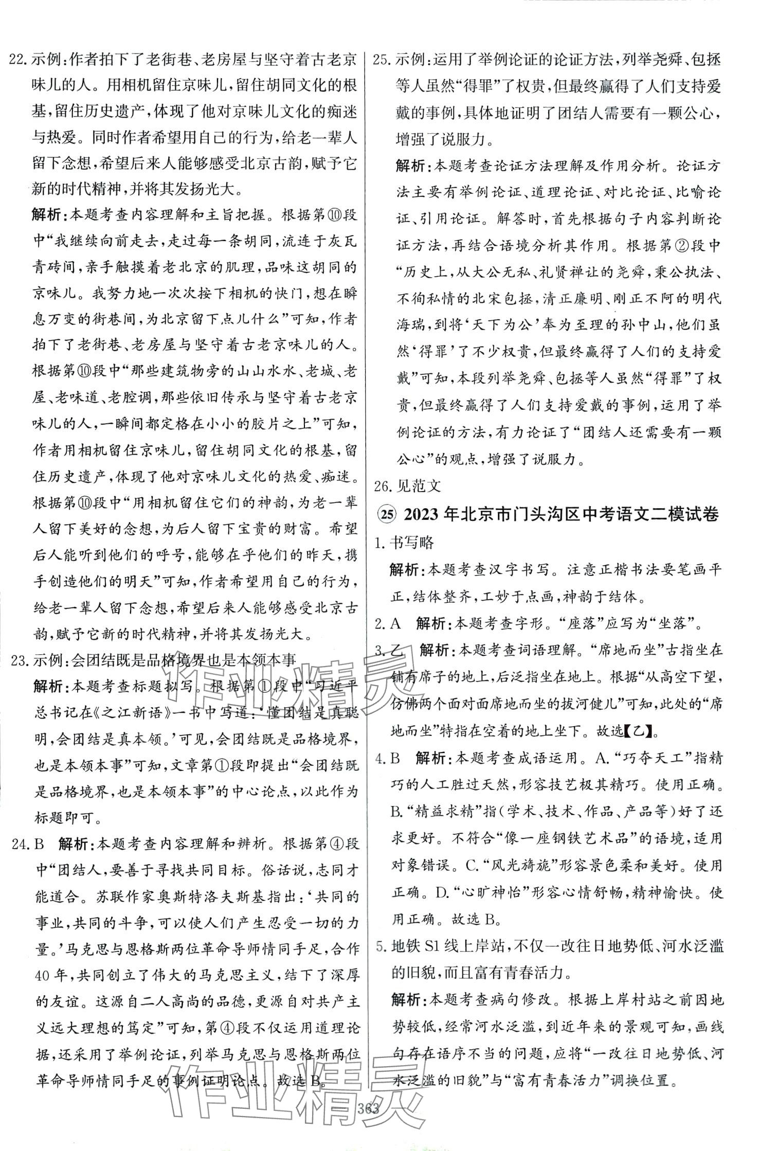注:目前有些书本章节名称可能整理的还不是很完善,但都是按照顺序排列的,请同学们按照顺序仔细查找。练习册 2024年北京市各区模拟及真题精选语文中考 答案主要是用来给同学们做完题方便对答案用的,请勿直接抄袭。
