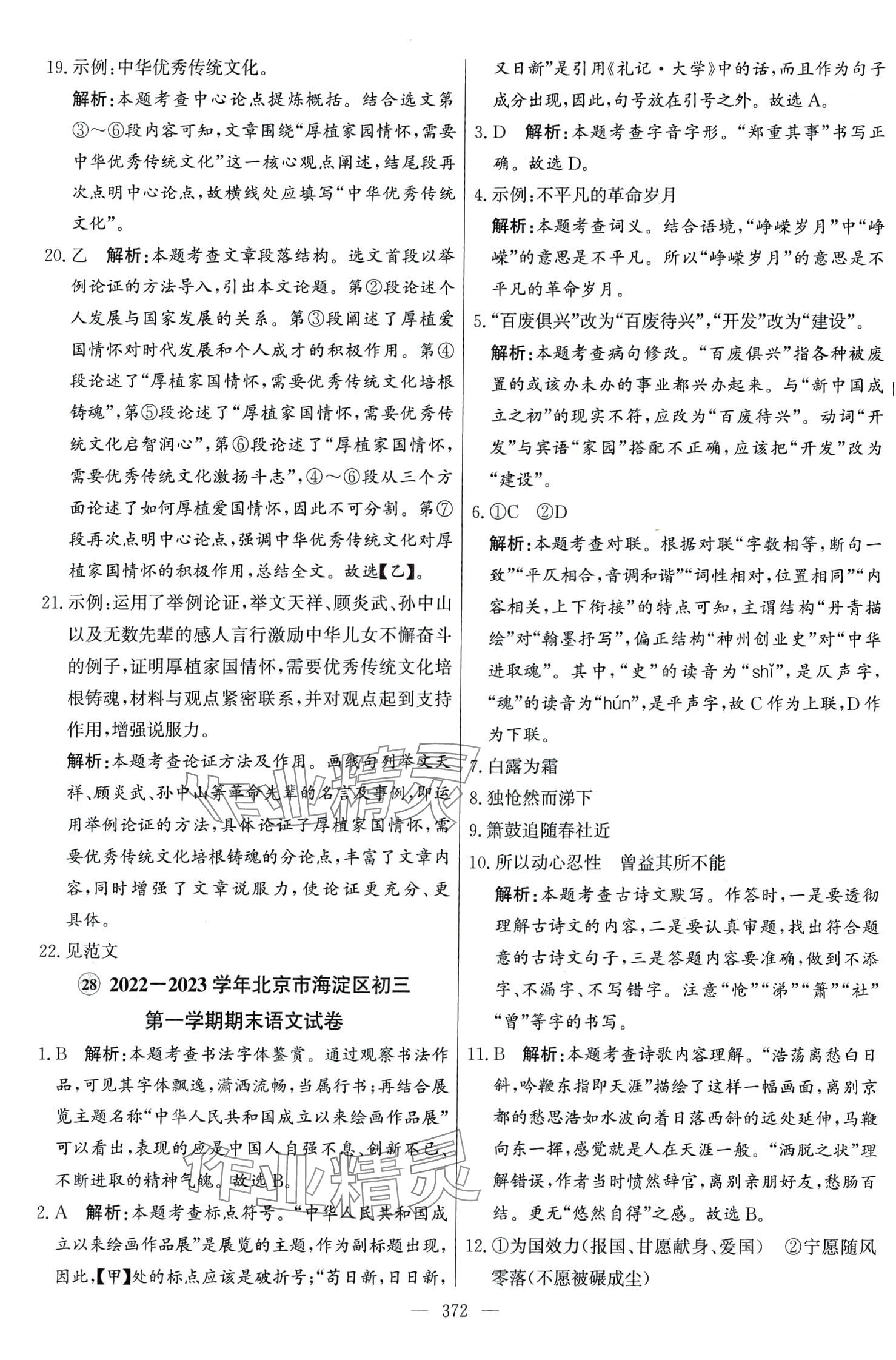 注:目前有些书本章节名称可能整理的还不是很完善,但都是按照顺序排列的,请同学们按照顺序仔细查找。练习册 2024年北京市各区模拟及真题精选语文中考 答案主要是用来给同学们做完题方便对答案用的,请勿直接抄袭。