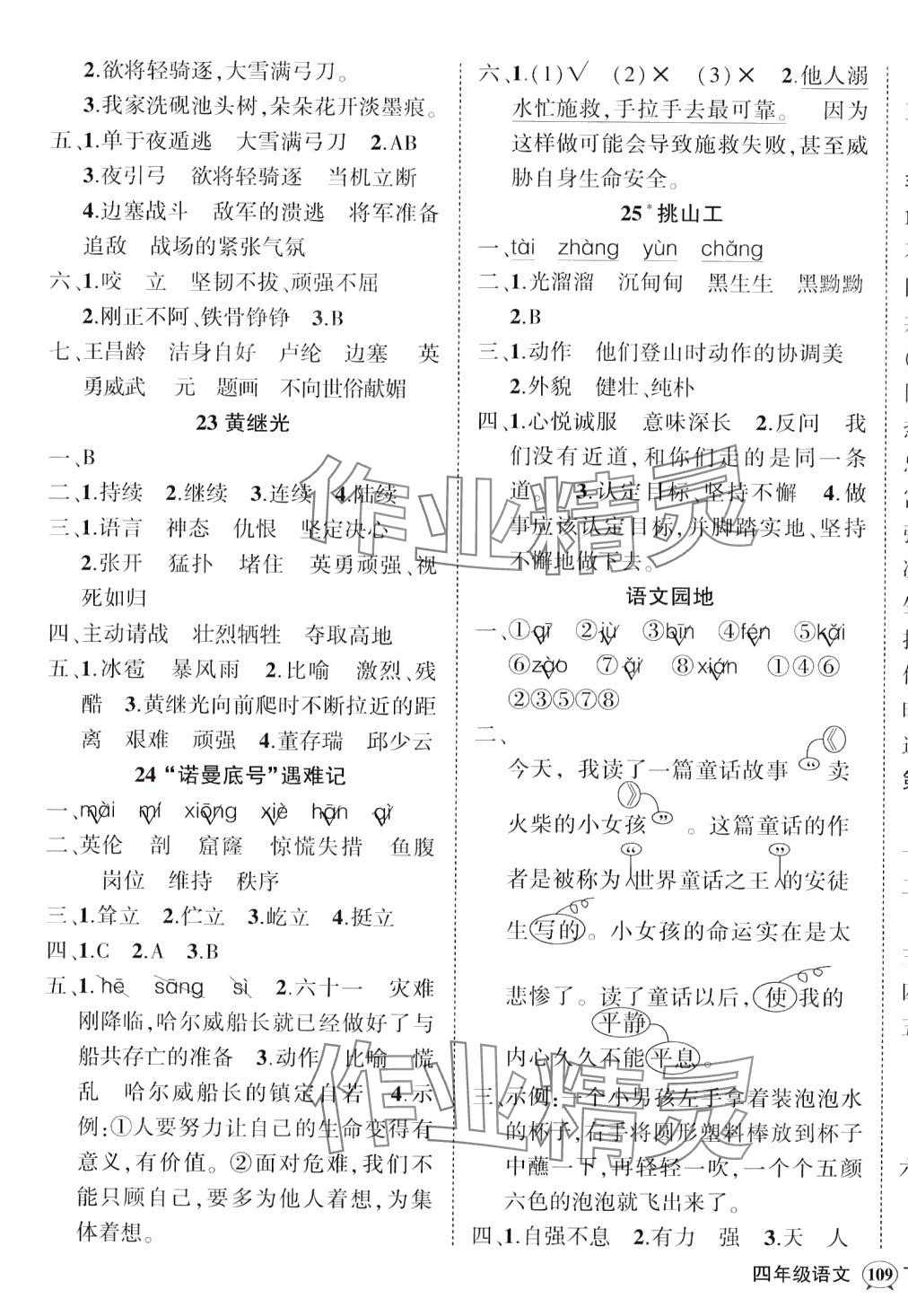 注:目前有些书本章节名称可能整理的还不是很完善,但都是按照顺序排列的,请同学们按照顺序仔细查找。练习册 2024年状元成才路创优作业100分四年级语文下册人教版四川专版 答案主要是用来给同学们做完题方便对答案用的,请勿直接抄袭。