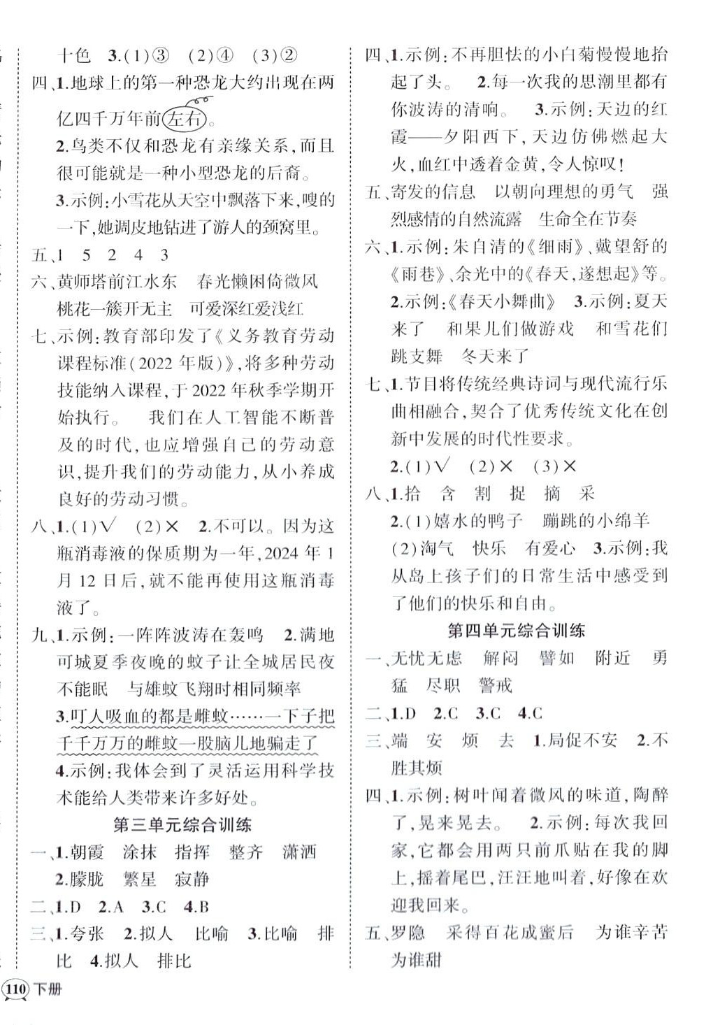 注:目前有些书本章节名称可能整理的还不是很完善,但都是按照顺序排列的,请同学们按照顺序仔细查找。练习册 2024年状元成才路创优作业100分四年级语文下册人教版四川专版 答案主要是用来给同学们做完题方便对答案用的,请勿直接抄袭。