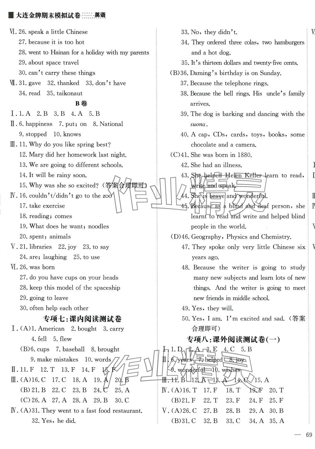 注:目前有些书本章节名称可能整理的还不是很完善,但都是按照顺序排列的,请同学们按照顺序仔细查找。练习册 2024年大连金牌期末模拟试卷六年级英语下册外研版 答案主要是用来给同学们做完题方便对答案用的,请勿直接抄袭。
