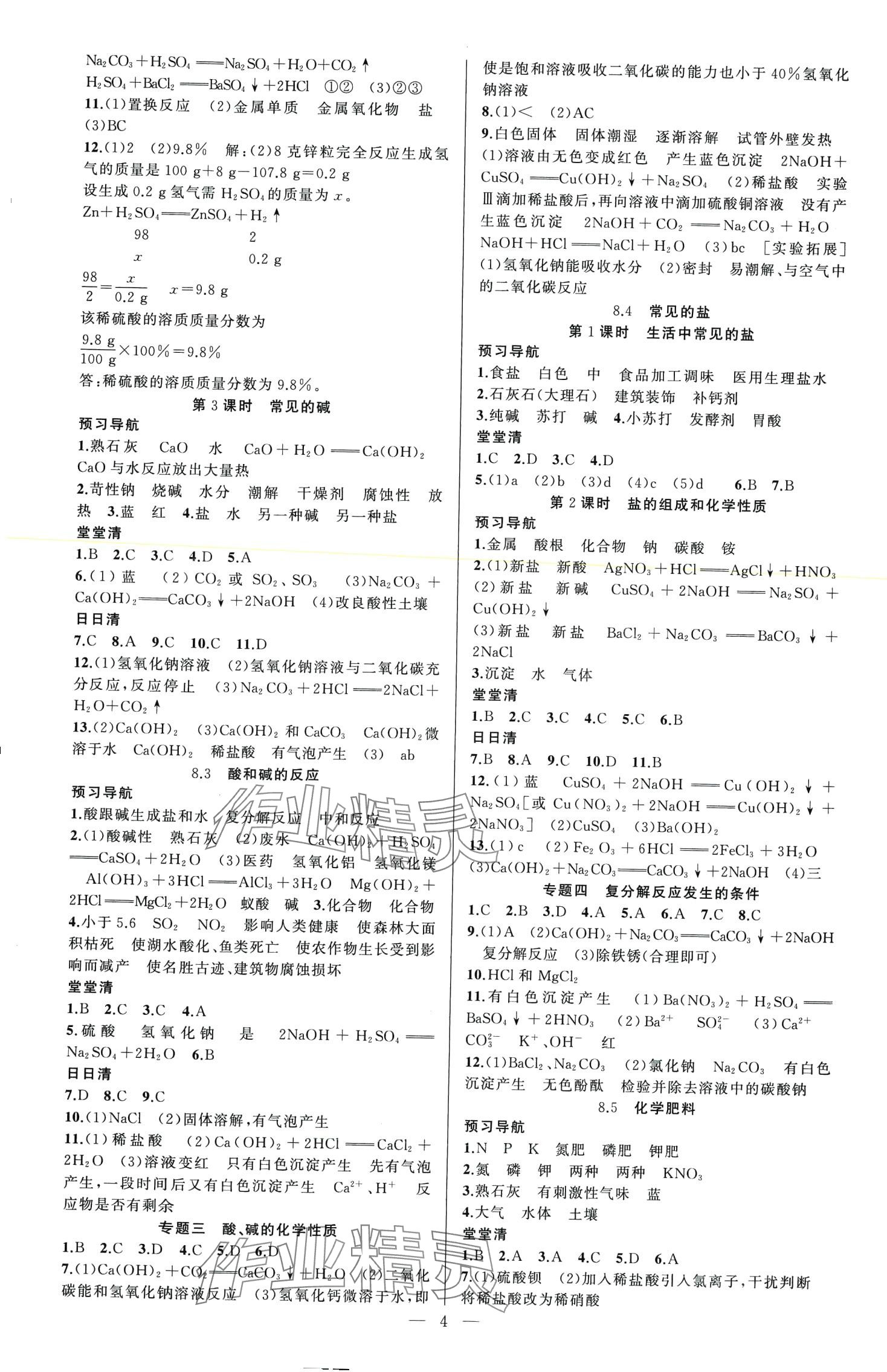 注:目前有些书本章节名称可能整理的还不是很完善,但都是按照顺序排列的,请同学们按照顺序仔细查找。练习册 2024年四清导航九年级化学下册科粤版 答案主要是用来给同学们做完题方便对答案用的,请勿直接抄袭。