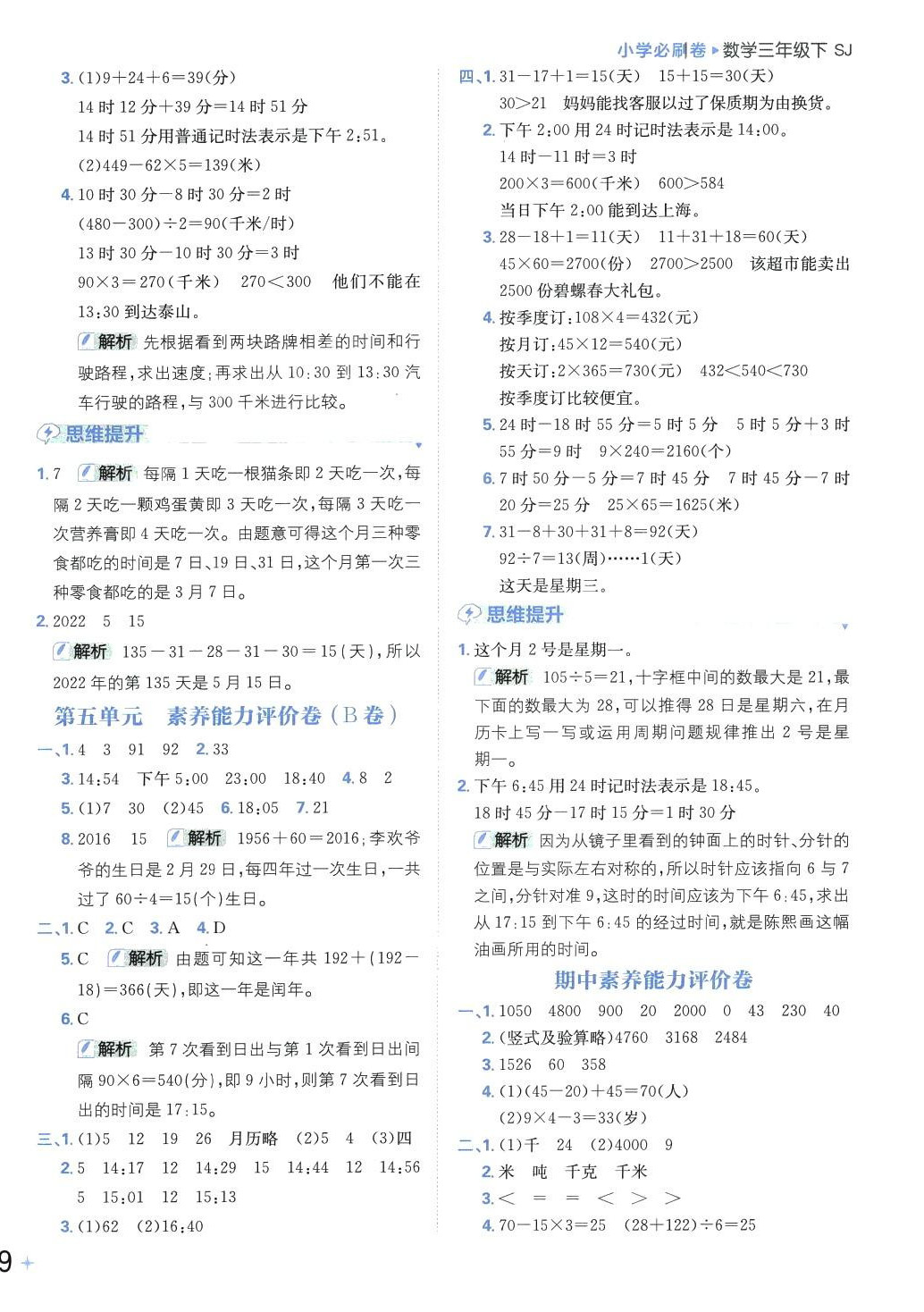 注:目前有些书本章节名称可能整理的还不是很完善,但都是按照顺序排列的,请同学们按照顺序仔细查找。练习册 2024年小学必刷卷三年级数学下册苏教版 答案主要是用来给同学们做完题方便对答案用的,请勿直接抄袭。