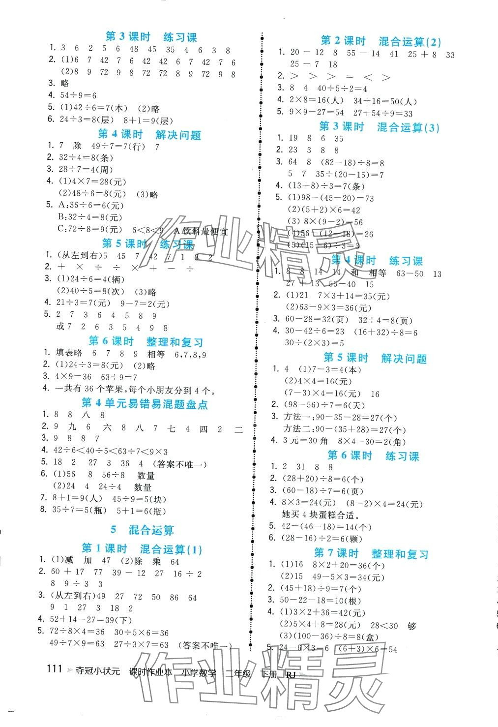 注:目前有些书本章节名称可能整理的还不是很完善,但都是按照顺序排列的,请同学们按照顺序仔细查找。练习册 2024年夺冠小状元课时作业本二年级数学下册人教版 答案主要是用来给同学们做完题方便对答案用的,请勿直接抄袭。