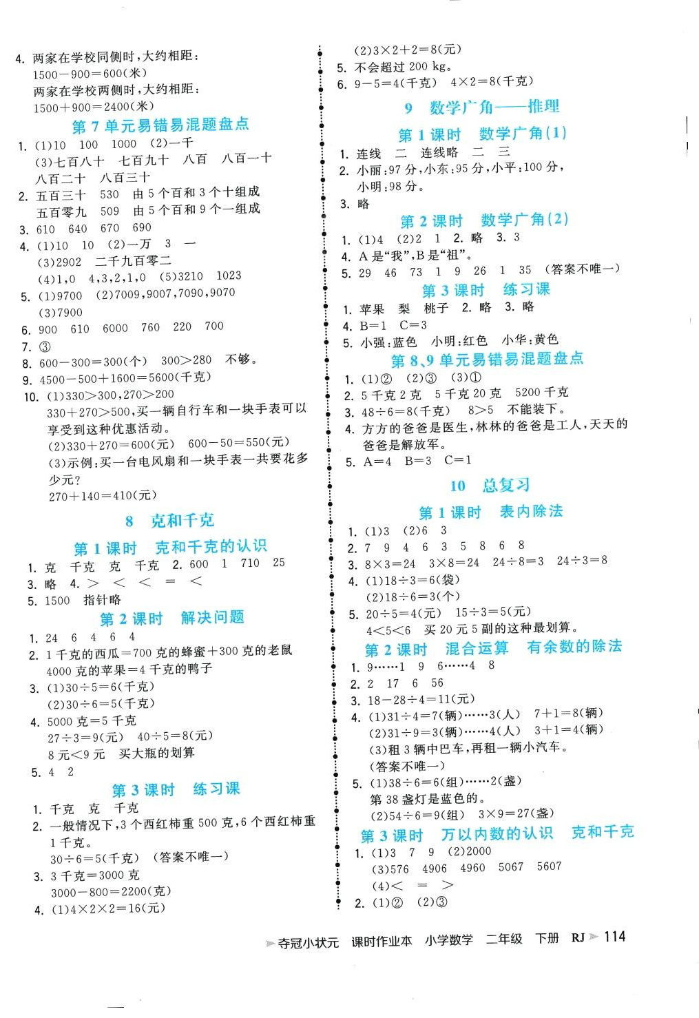 注:目前有些书本章节名称可能整理的还不是很完善,但都是按照顺序排列的,请同学们按照顺序仔细查找。练习册 2024年夺冠小状元课时作业本二年级数学下册人教版 答案主要是用来给同学们做完题方便对答案用的,请勿直接抄袭。