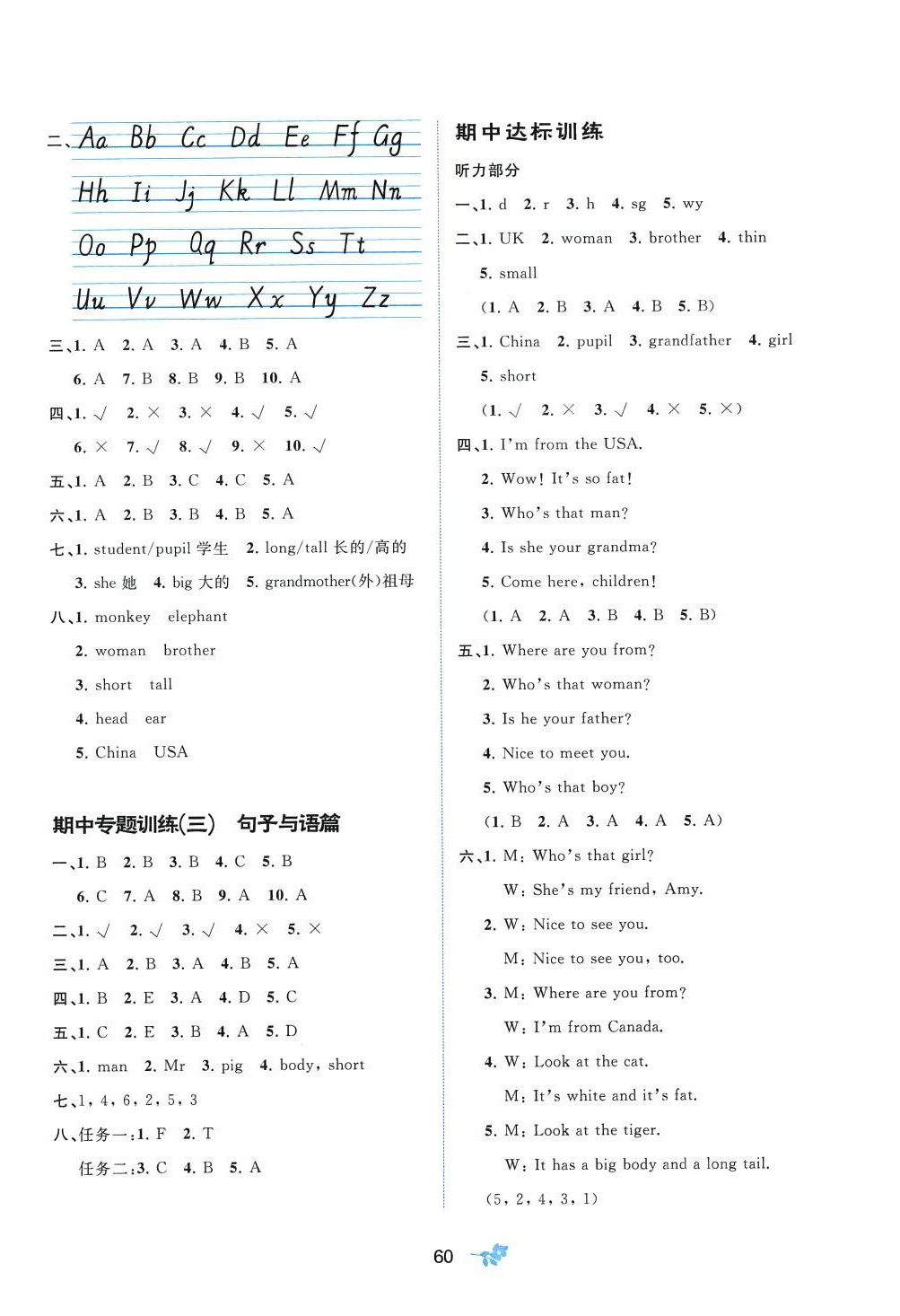 注:目前有些书本章节名称可能整理的还不是很完善,但都是按照顺序排列的,请同学们按照顺序仔细查找。练习册 2024年新课程学习与测评单元双测三年级英语下册人教版A版 答案主要是用来给同学们做完题方便对答案用的,请勿直接抄袭。