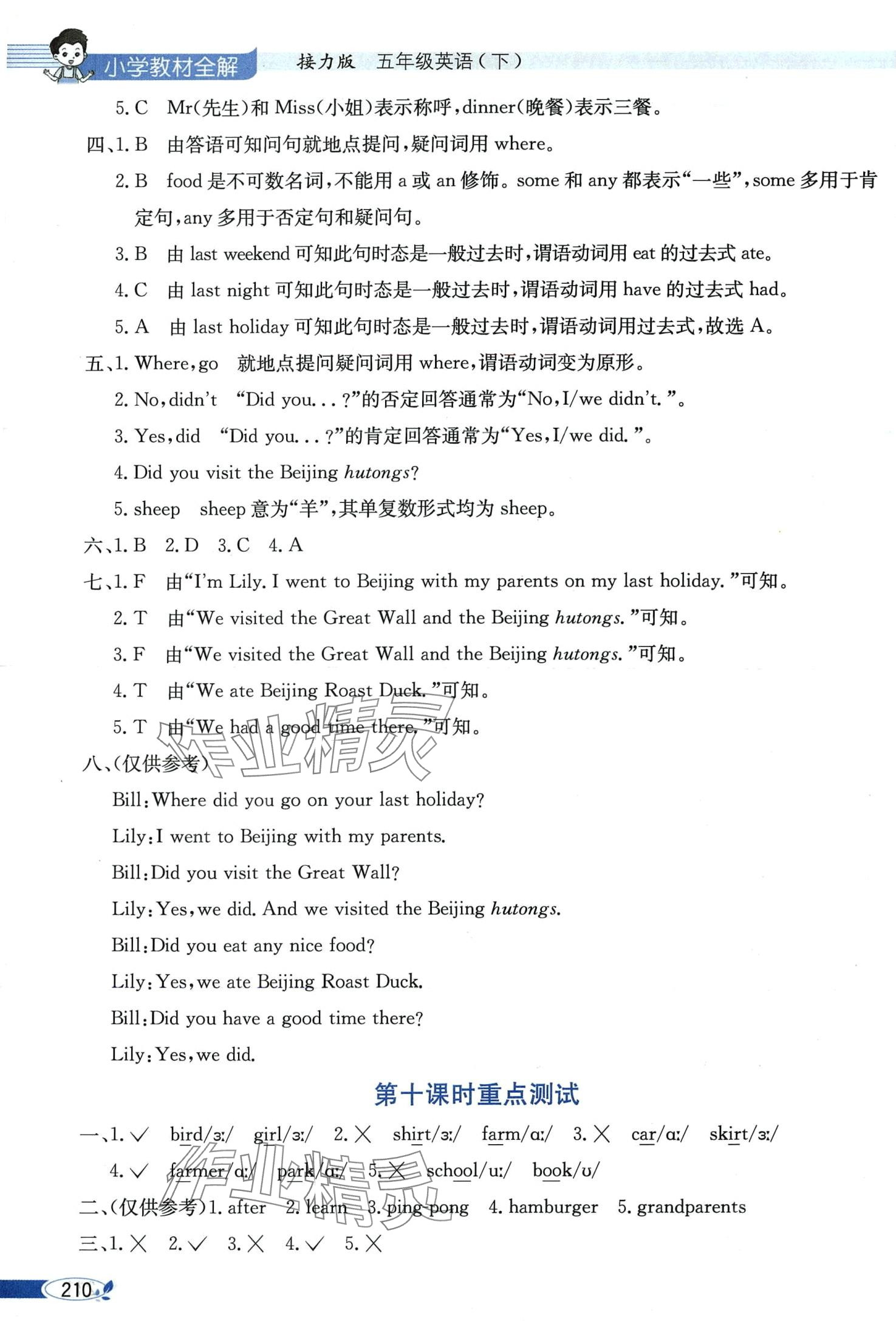 注:目前有些书本章节名称可能整理的还不是很完善,但都是按照顺序排列的,请同学们按照顺序仔细查找。练习册 2024年教材全解五年级英语下册接力版 答案主要是用来给同学们做完题方便对答案用的,请勿直接抄袭。