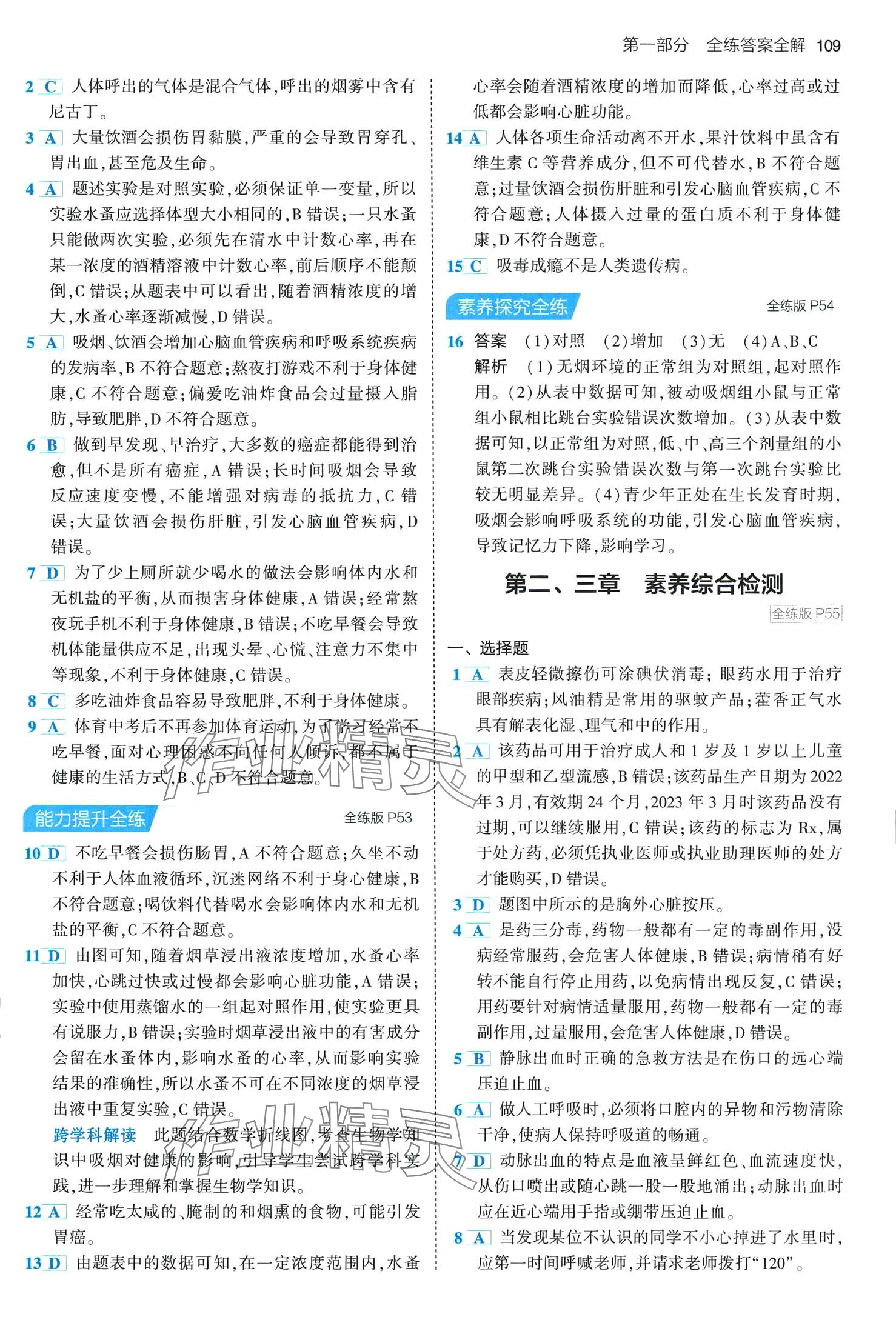 注:目前有些书本章节名称可能整理的还不是很完善,但都是按照顺序排列的,请同学们按照顺序仔细查找。练习册 2024年5年中考3年模拟七年级生物下册鲁科版山东专版 答案主要是用来给同学们做完题方便对答案用的,请勿直接抄袭。