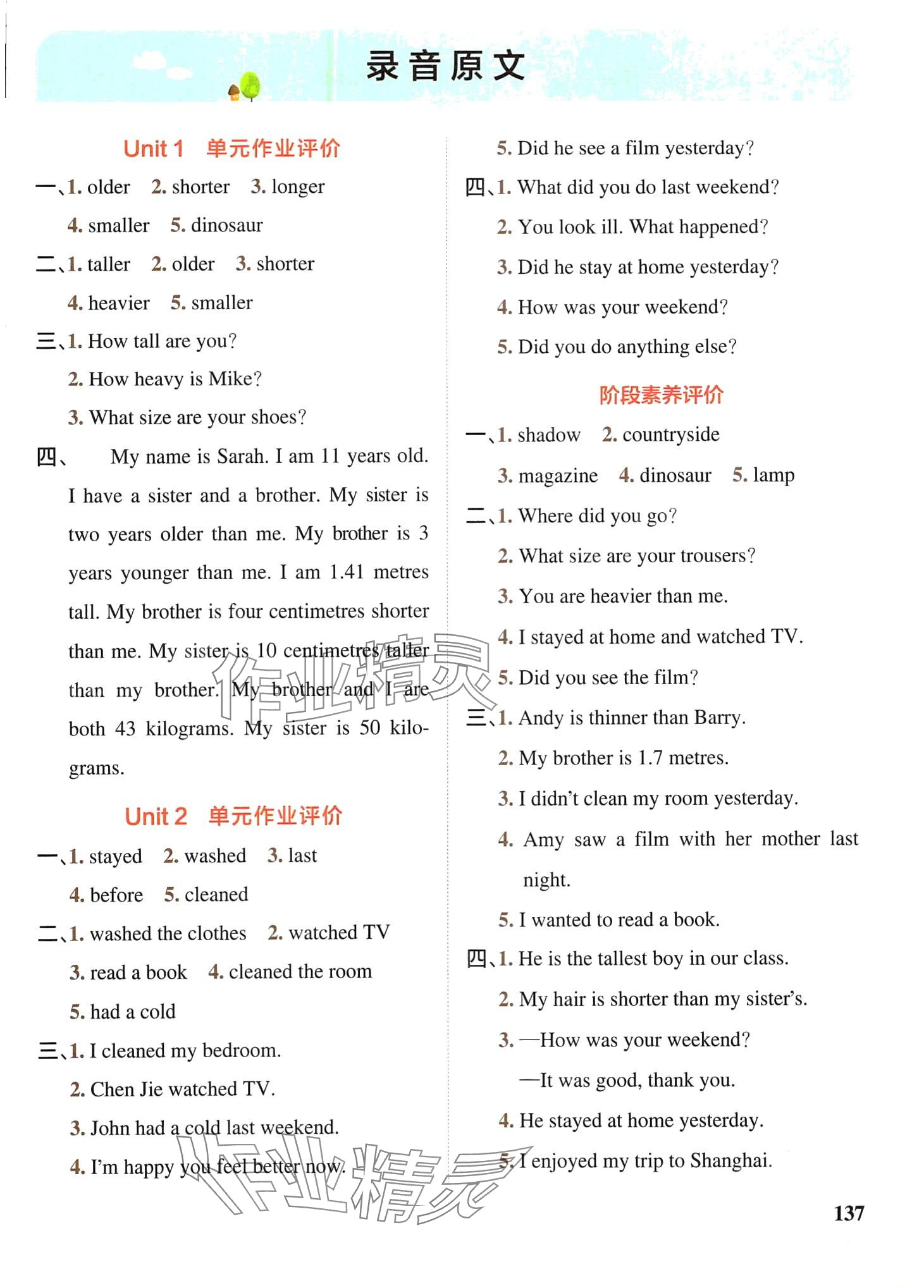 注:目前有些书本章节名称可能整理的还不是很完善,但都是按照顺序排列的,请同学们按照顺序仔细查找。练习册 2024年PASS教材搭档六年级英语下册人教版 答案主要是用来给同学们做完题方便对答案用的,请勿直接抄袭。