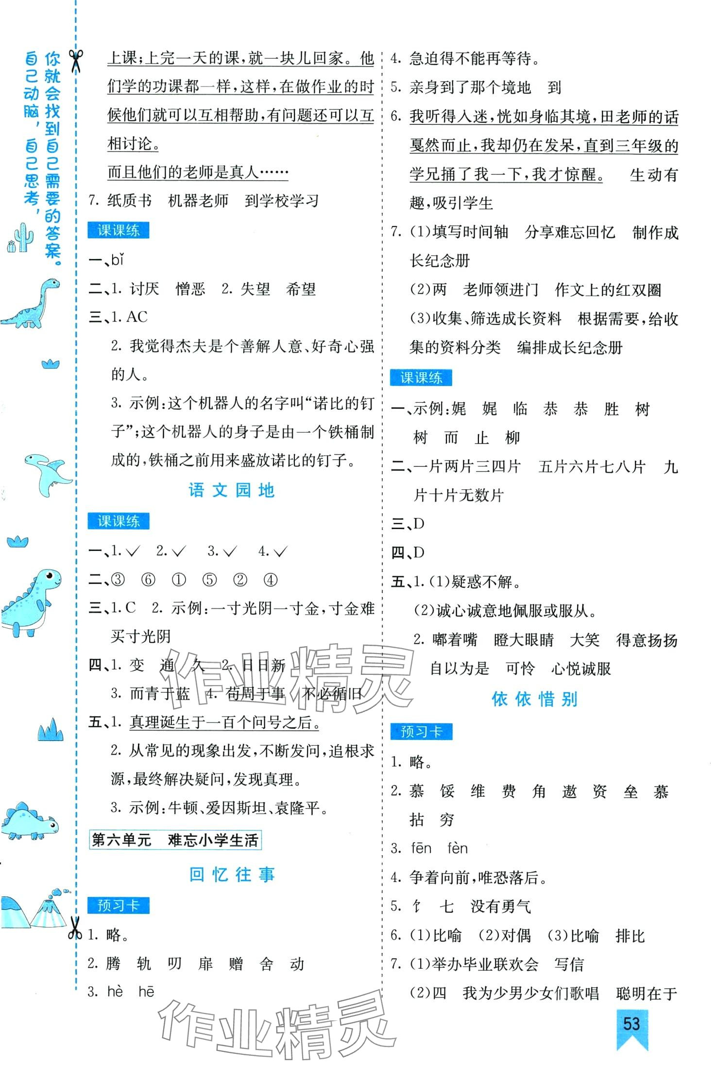 注:目前有些书本章节名称可能整理的还不是很完善,但都是按照顺序排列的,请同学们按照顺序仔细查找。练习册 2024年七彩课堂六年级语文下册人教版江西专版 答案主要是用来给同学们做完题方便对答案用的,请勿直接抄袭。