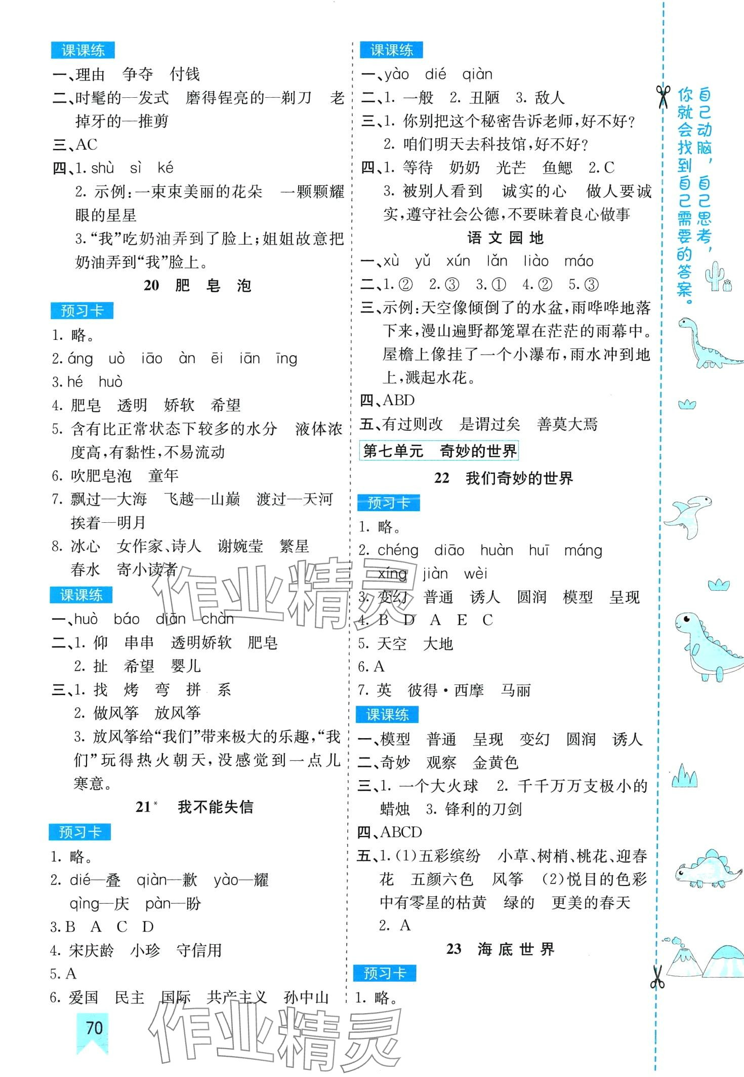 注:目前有些书本章节名称可能整理的还不是很完善,但都是按照顺序排列的,请同学们按照顺序仔细查找。练习册 2024年七彩课堂三年级语文下册人教版黑龙江专版 答案主要是用来给同学们做完题方便对答案用的,请勿直接抄袭。