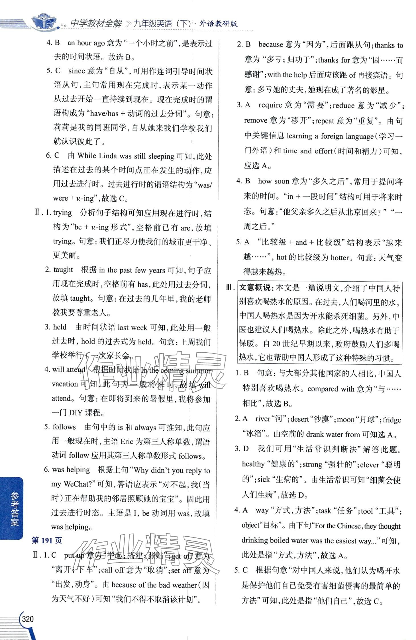 注:目前有些书本章节名称可能整理的还不是很完善,但都是按照顺序排列的,请同学们按照顺序仔细查找。练习册 2024年教材全解九年级英语下册外研版 答案主要是用来给同学们做完题方便对答案用的,请勿直接抄袭。