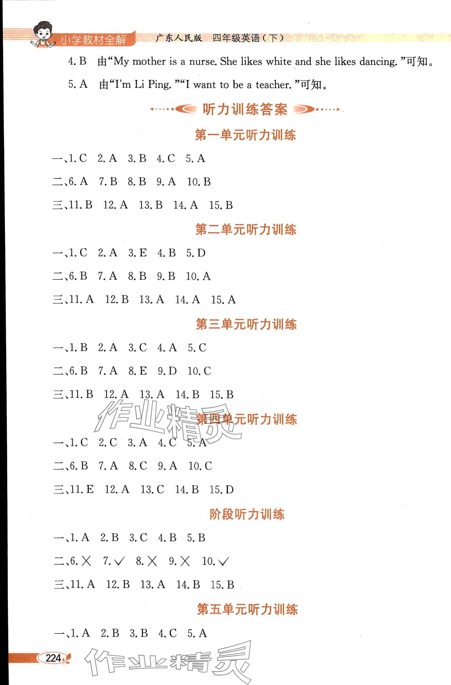 注:目前有些书本章节名称可能整理的还不是很完善,但都是按照顺序排列的,请同学们按照顺序仔细查找。练习册 2024年教材全解四年级英语下册粤人版 答案主要是用来给同学们做完题方便对答案用的,请勿直接抄袭。