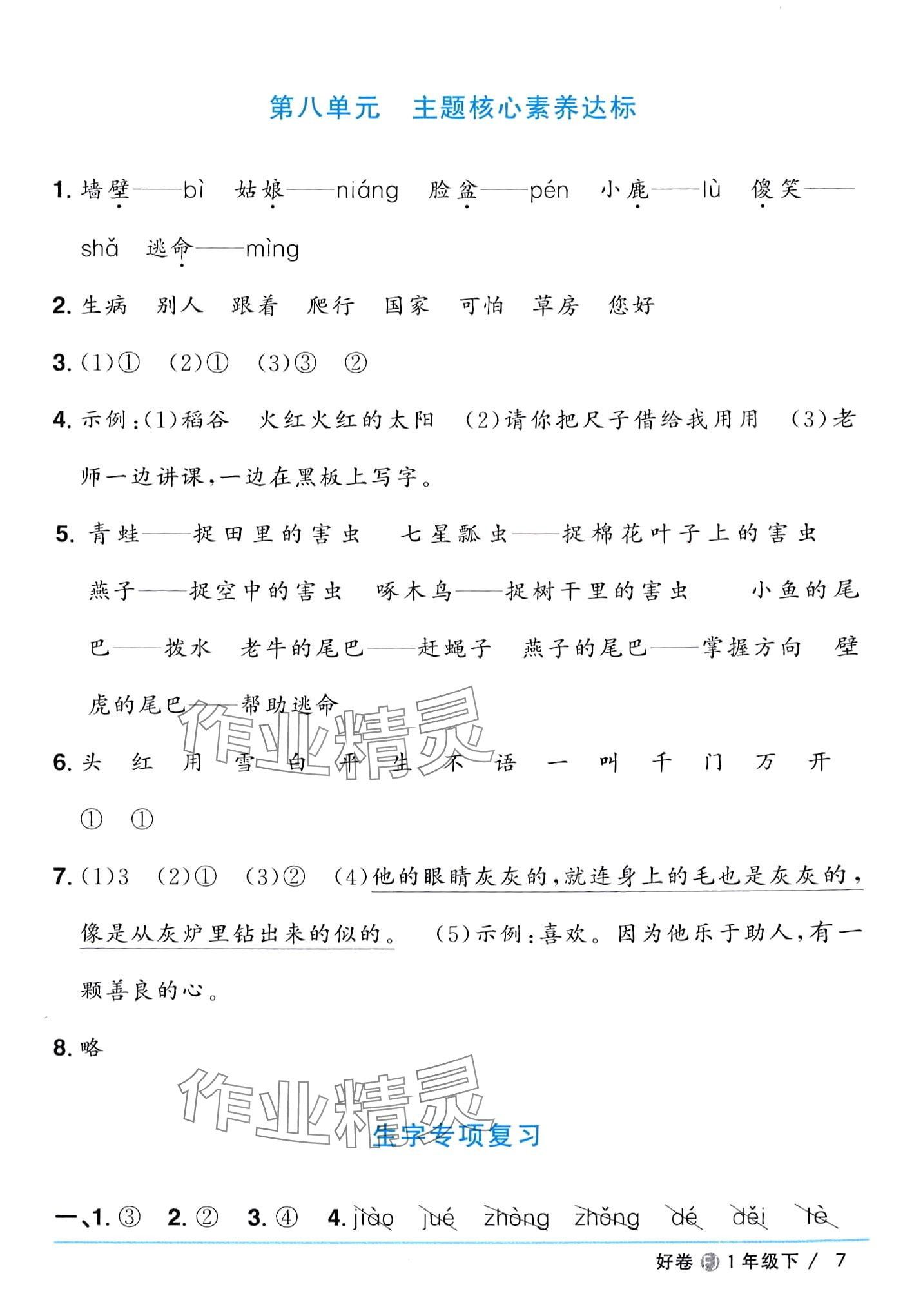 注:目前有些书本章节名称可能整理的还不是很完善,但都是按照顺序排列的,请同学们按照顺序仔细查找。练习册 2024年阳光同学一线名师全优好卷一年级语文下册人教版福建专版 答案主要是用来给同学们做完题方便对答案用的,请勿直接抄袭。