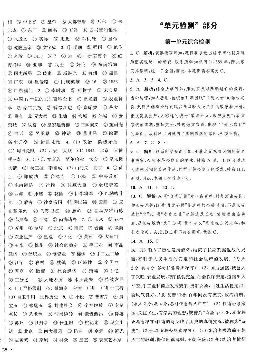注:目前有些书本章节名称可能整理的还不是很完善,但都是按照顺序排列的,请同学们按照顺序仔细查找。练习册 2024年通城学典活页检测七年级历史下册人教版 答案主要是用来给同学们做完题方便对答案用的,请勿直接抄袭。