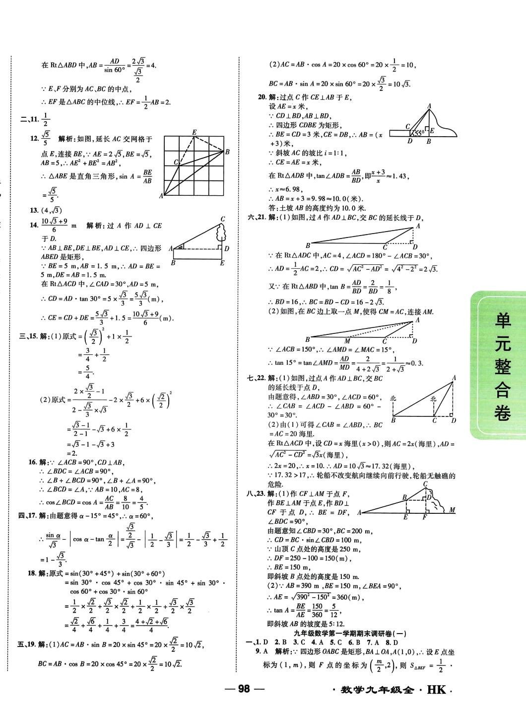 注:目前有些书本章节名称可能整理的还不是很完善,但都是按照顺序排列的,请同学们按照顺序仔细查找。练习册 2024年一线调研单元整合卷九年级数学全一册沪科版 答案主要是用来给同学们做完题方便对答案用的,请勿直接抄袭。
