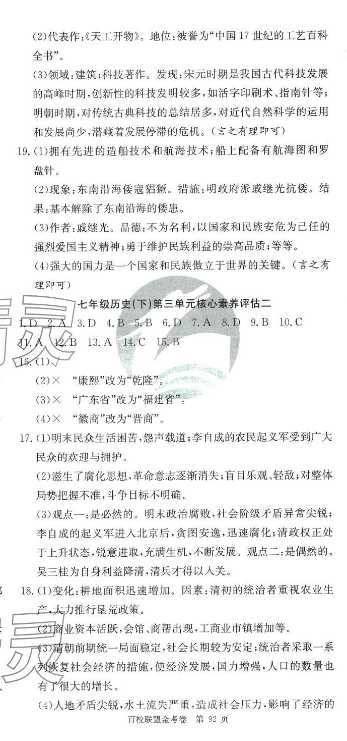 注:目前有些书本章节名称可能整理的还不是很完善,但都是按照顺序排列的,请同学们按照顺序仔细查找。练习册 2024年百校联盟金考卷七年级历史下册人教版 答案主要是用来给同学们做完题方便对答案用的,请勿直接抄袭。