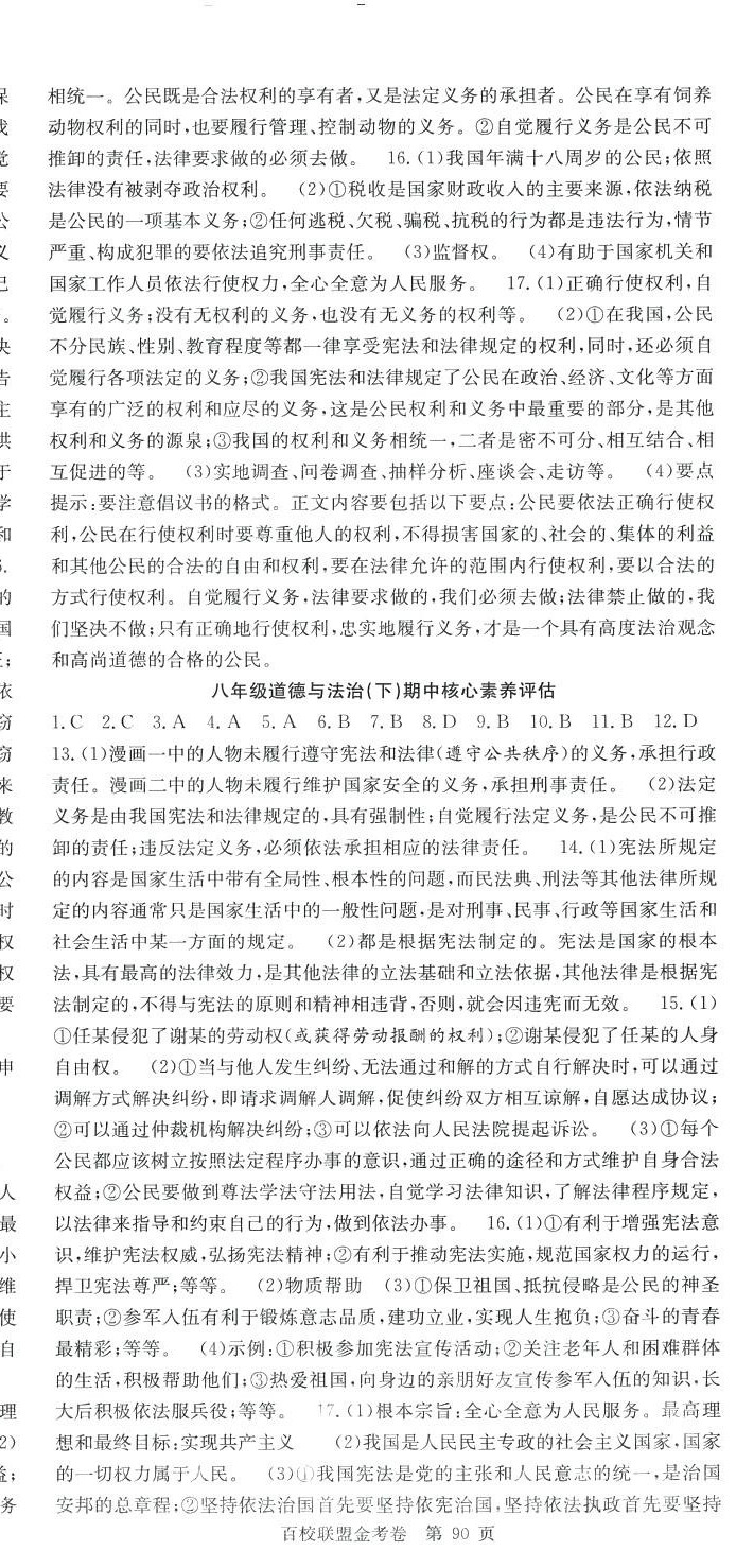 《2024年百校联盟金考卷八年级道德与法治下册人教版》