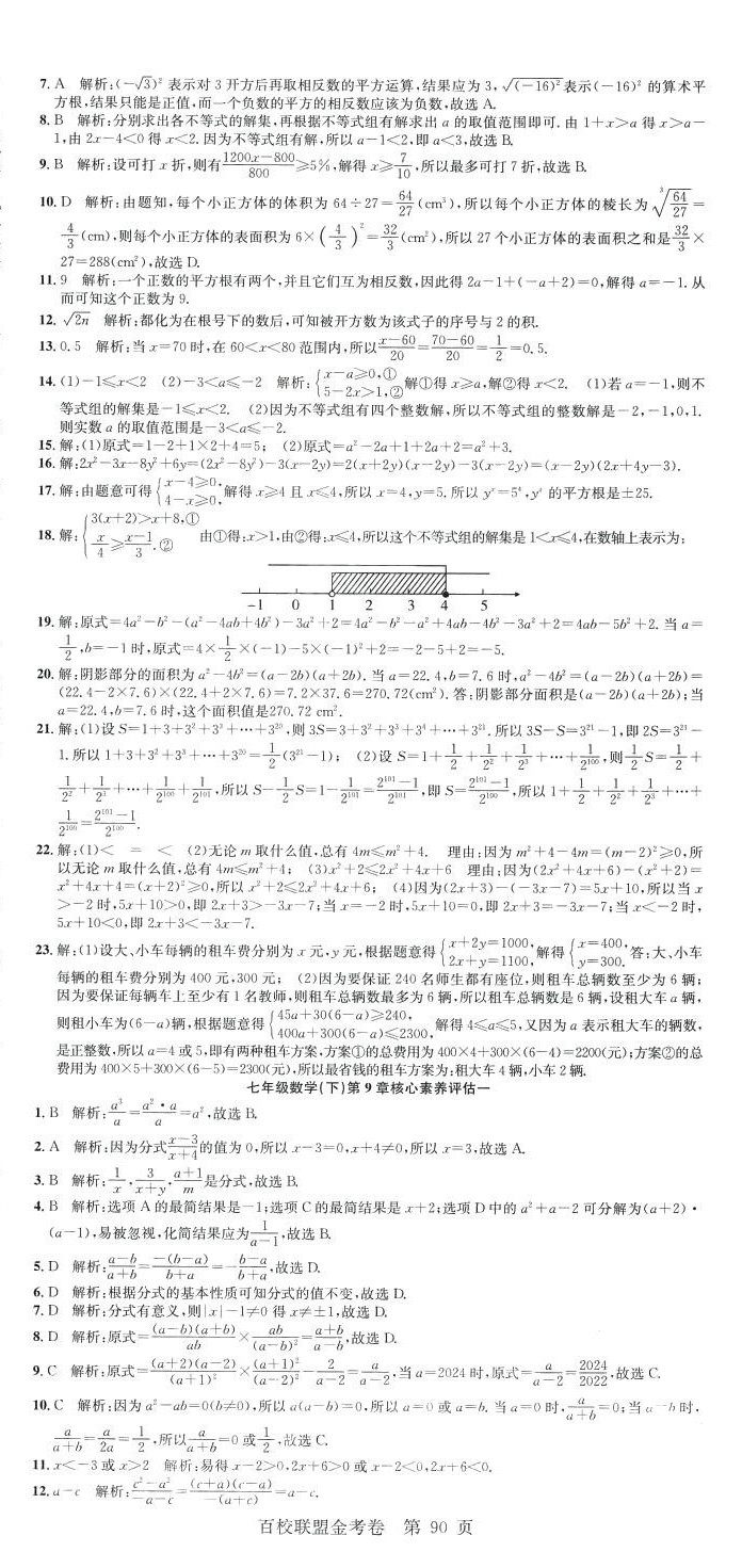 注:目前有些书本章节名称可能整理的还不是很完善,但都是按照顺序排列的,请同学们按照顺序仔细查找。练习册 2024年百校联盟金考卷七年级数学下册沪科版 答案主要是用来给同学们做完题方便对答案用的,请勿直接抄袭。