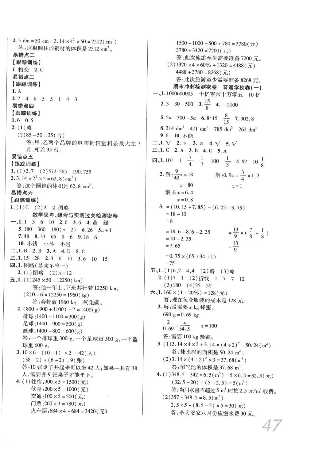 2024年荣恒教育冲刺100分六年级数学下册人教版
