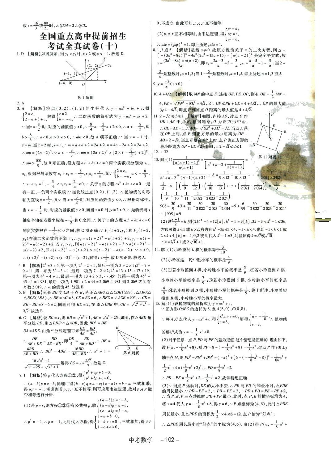 注:目前有些书本章节名称可能整理的还不是很完善,但都是按照顺序排列的,请同学们按照顺序仔细查找。练习册 2024年全国重点高中提前招生考试全真试卷数学中考 答案主要是用来给同学们做完题方便对答案用的,请勿直接抄袭。