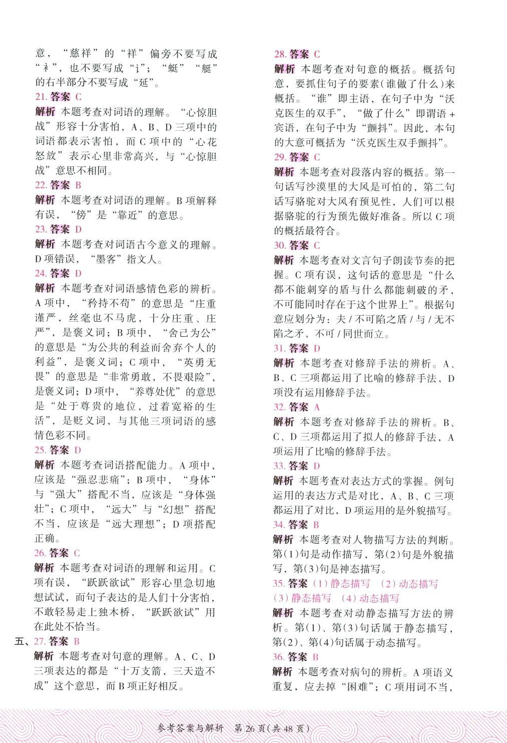 注:目前有些书本章节名称可能整理的还不是很完善,但都是按照顺序排列的,请同学们按照顺序仔细查找。练习册 2024年木头马优卷五年级语文下册人教版福建专版 答案主要是用来给同学们做完题方便对答案用的,请勿直接抄袭。