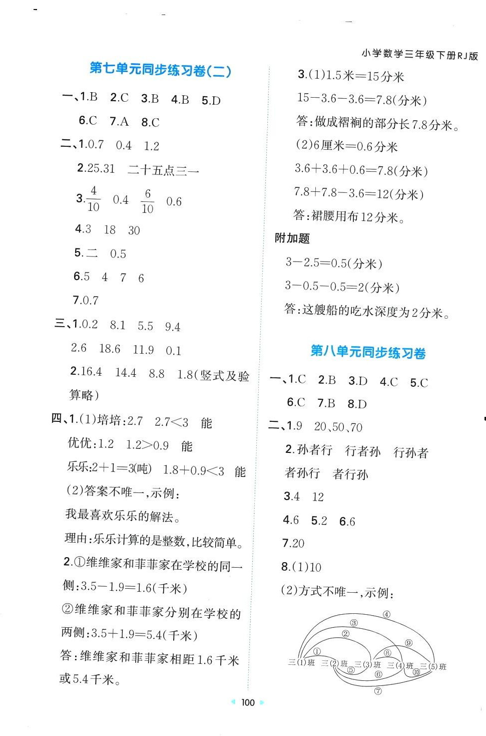 注:目前有些书本章节名称可能整理的还不是很完善,但都是按照顺序排列的,请同学们按照顺序仔细查找。练习册 2024年一本同步培优新卷三年级数学下册人教版 答案主要是用来给同学们做完题方便对答案用的,请勿直接抄袭。