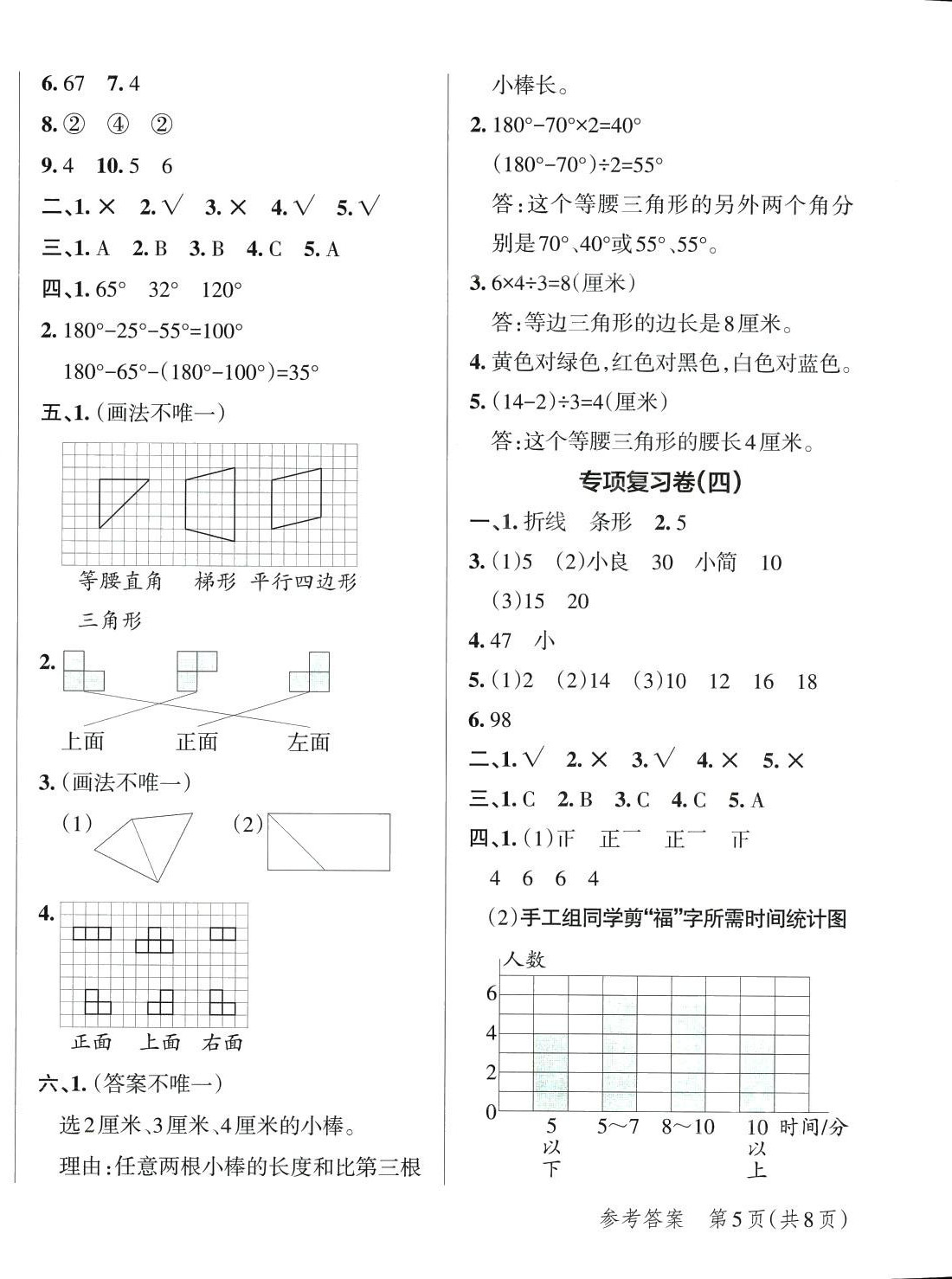 注:目前有些书本章节名称可能整理的还不是很完善,但都是按照顺序排列的,请同学们按照顺序仔细查找。练习册 2024年小学学霸单元期末标准卷四年级数学下册北师大版 答案主要是用来给同学们做完题方便对答案用的,请勿直接抄袭。