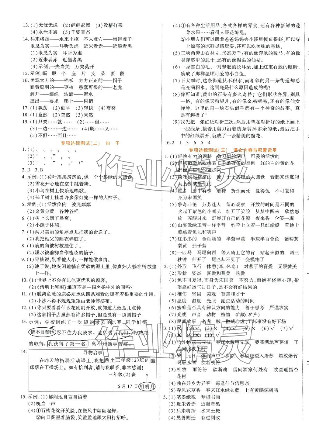注:目前有些书本章节名称可能整理的还不是很完善,但都是按照顺序排列的,请同学们按照顺序仔细查找。练习册 2024年畅响双优卷三年级语文下册人教版 答案主要是用来给同学们做完题方便对答案用的,请勿直接抄袭。