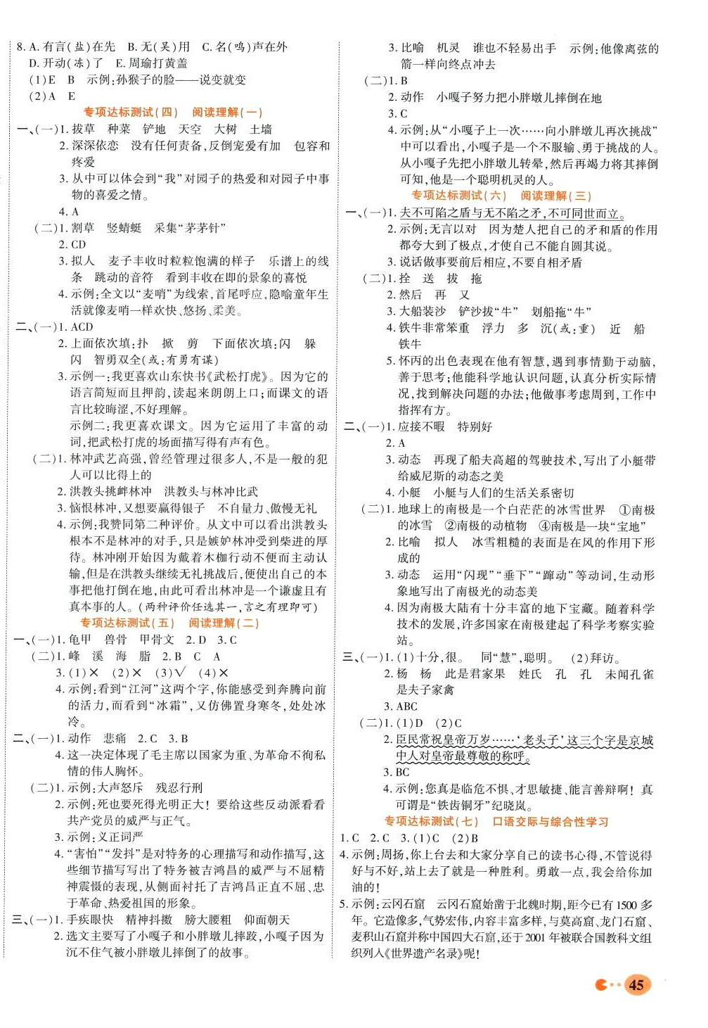 注:目前有些书本章节名称可能整理的还不是很完善,但都是按照顺序排列的,请同学们按照顺序仔细查找。练习册 2024年畅响双优卷五年级语文下册人教版 答案主要是用来给同学们做完题方便对答案用的,请勿直接抄袭。