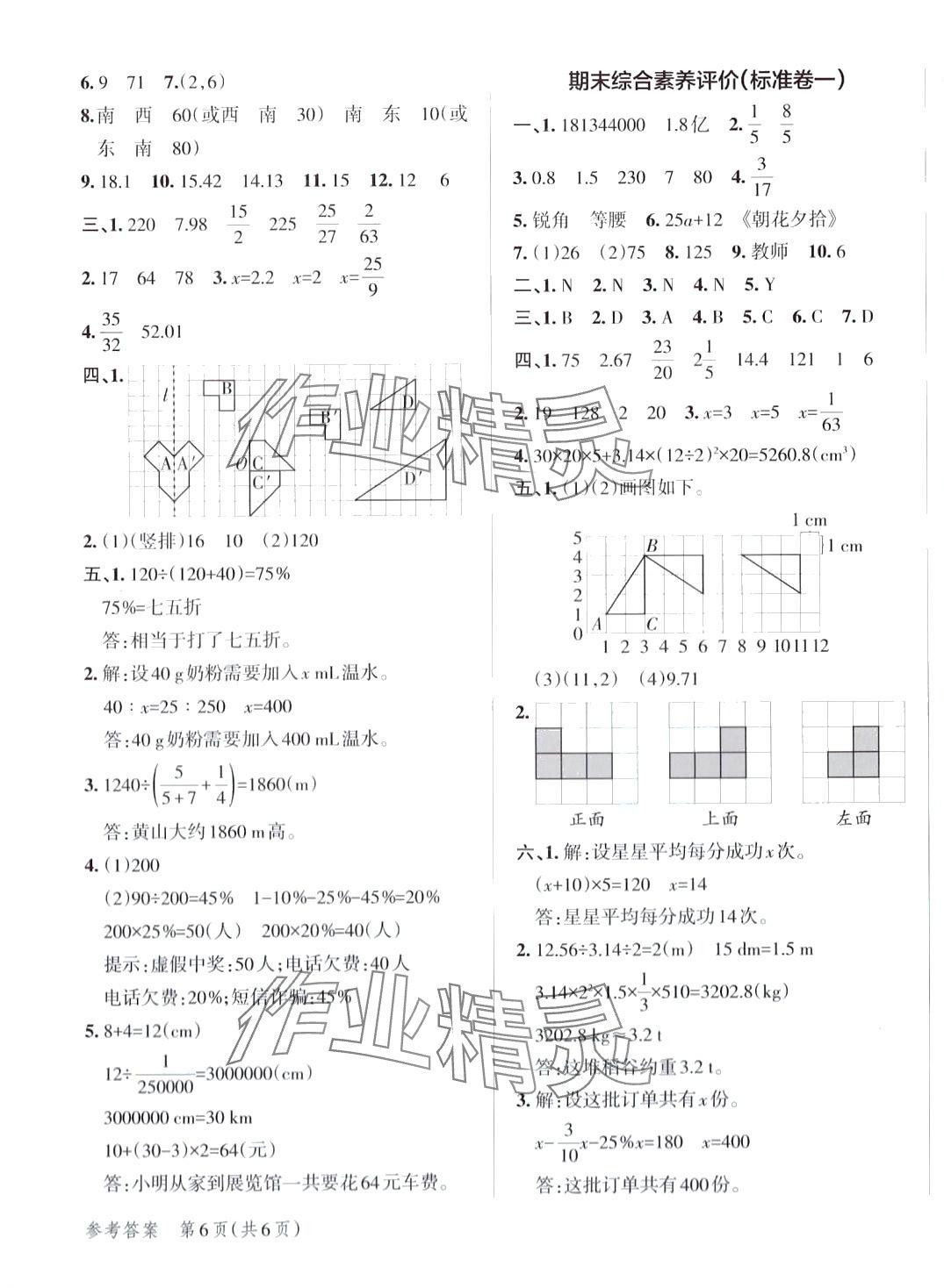 注:目前有些书本章节名称可能整理的还不是很完善,但都是按照顺序排列的,请同学们按照顺序仔细查找。练习册 2024年小学学霸单元期末标准卷六年级数学下册北师大版 答案主要是用来给同学们做完题方便对答案用的,请勿直接抄袭。
