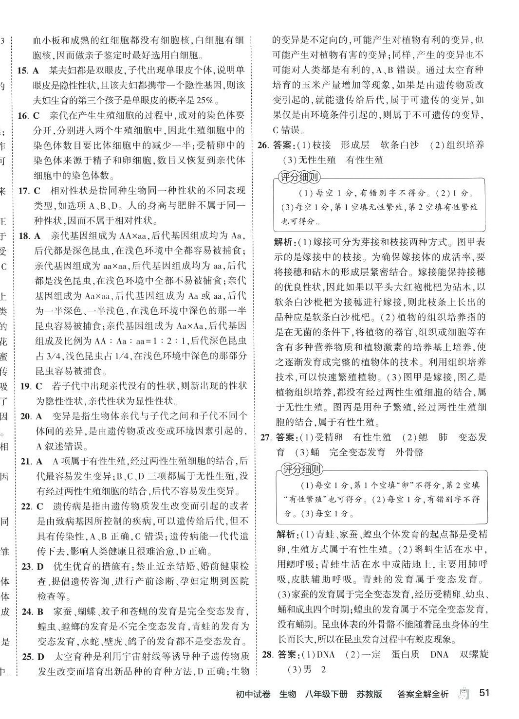 2024年5年中考3年模拟初中试卷八年级生物下册苏教版