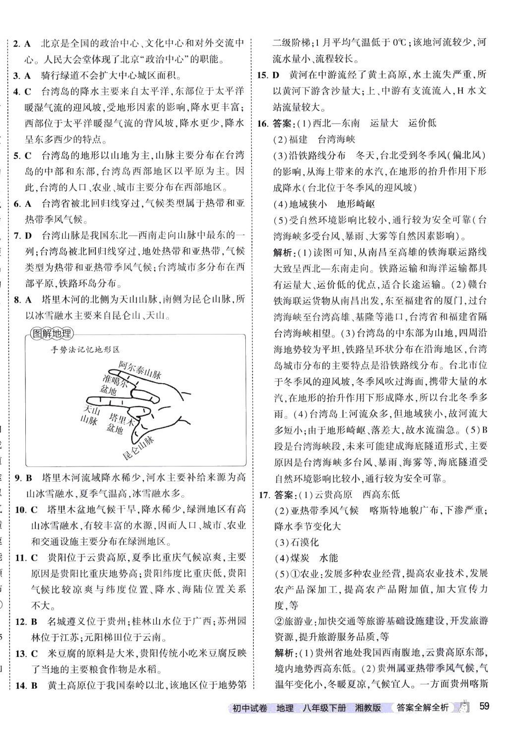 2024年5年中考3年模拟初中试卷八年级地理下册湘教版