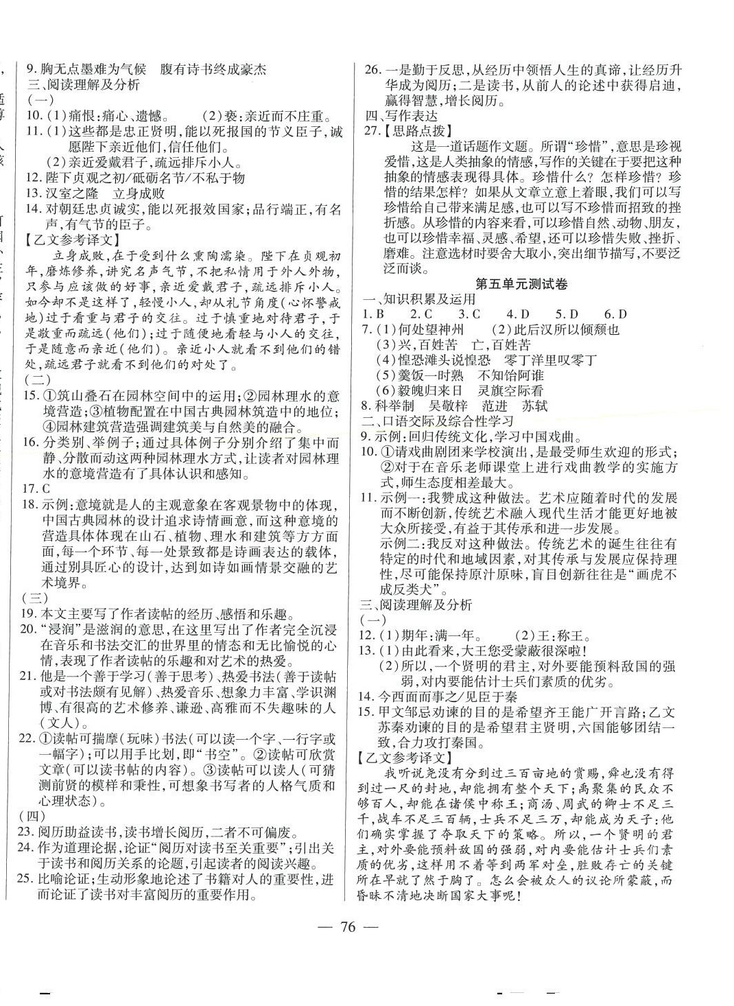 注:目前有些书本章节名称可能整理的还不是很完善,但都是按照顺序排列的,请同学们按照顺序仔细查找。练习册 2024年全练单元卷九年级语文下册通用版 答案主要是用来给同学们做完题方便对答案用的,请勿直接抄袭。