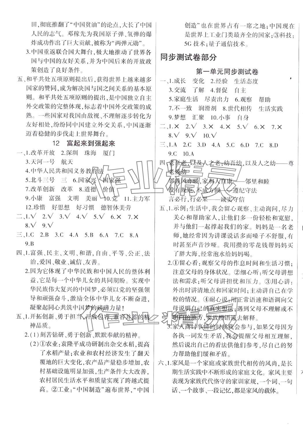 注:目前有些书本章节名称可能整理的还不是很完善,但都是按照顺序排列的,请同学们按照顺序仔细查找。练习册 2024年优派全能检测五年级道德与法治下册人教版 答案主要是用来给同学们做完题方便对答案用的,请勿直接抄袭。