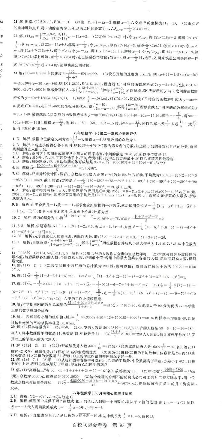 注:目前有些书本章节名称可能整理的还不是很完善,但都是按照顺序排列的,请同学们按照顺序仔细查找。练习册 2024年百校联盟金考卷八年级数学下册人教版 答案主要是用来给同学们做完题方便对答案用的,请勿直接抄袭。