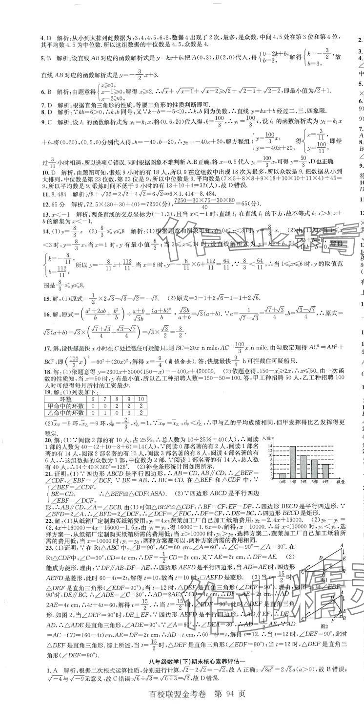 注:目前有些书本章节名称可能整理的还不是很完善,但都是按照顺序排列的,请同学们按照顺序仔细查找。练习册 2024年百校联盟金考卷八年级数学下册人教版 答案主要是用来给同学们做完题方便对答案用的,请勿直接抄袭。