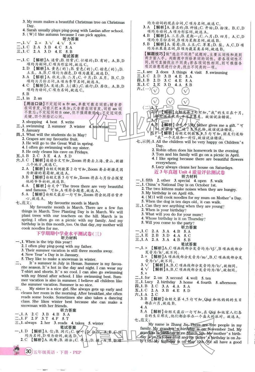 注:目前有些书本章节名称可能整理的还不是很完善,但都是按照顺序排列的,请同学们按照顺序仔细查找。练习册 2024年河南3年玉汝于成五年级英语下册人教PEP版 答案主要是用来给同学们做完题方便对答案用的,请勿直接抄袭。